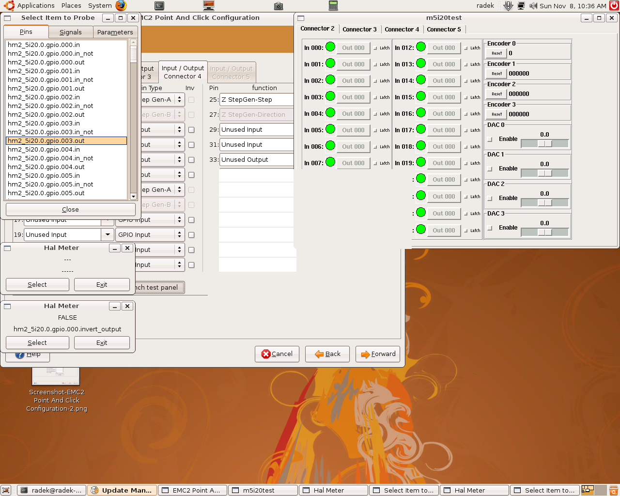 V PNCCONF jsou graficky vyvedeny a nalinkovány snad všechny možnosti EMC s podporou Mesa což opravdu chybělo a především je to dobrý vzor něčeho jak to má vypadat.