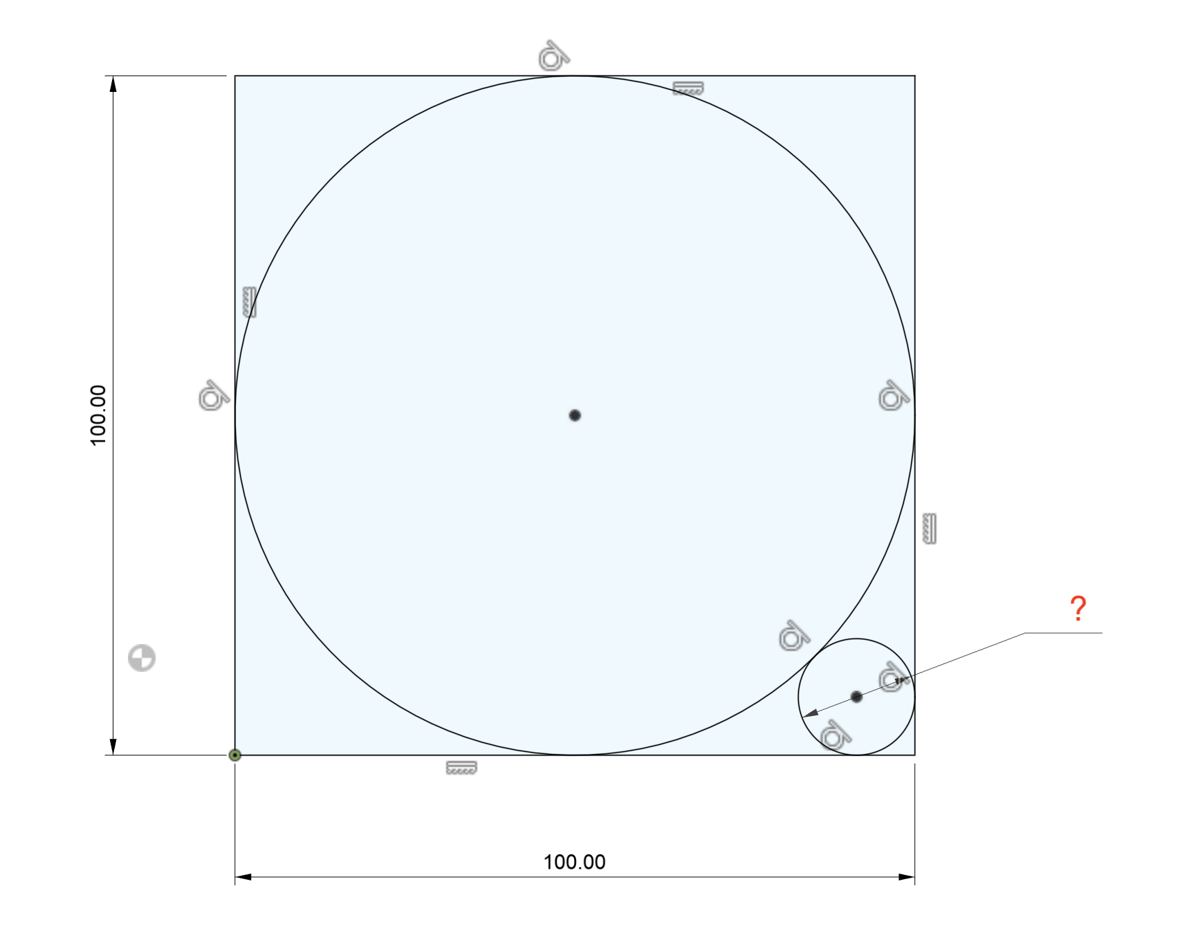 Když člověk zná pana Pythagora, pak to jde spočítat z hlavy. Vycházíme z toho, že úhlopříčka každého čtverce ze středu kruhu k základně je odmocnina ze dvou krát poloměr kružnice. Rozdíl úhlopříček je součet poloměrů. Z toho plyne, že poloměry kružnic tvoří geometrickou řadu s kvocientem (sqrt(2) - 1)/(sqrt(2) +1), takže když tímto pitomým číslem násobíš těch 50, tak vyjde těch 17 a něco. Platí i pro další a další kružnice.