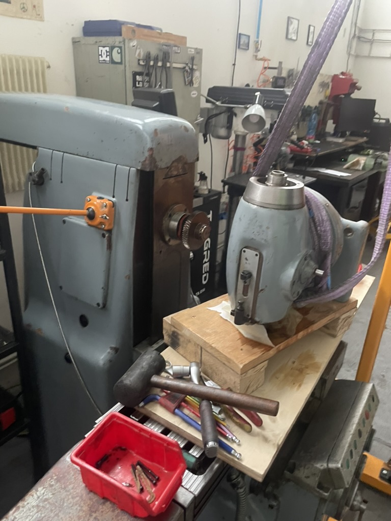 Na vřeteníku mi chybí kolo/páka k posuvu vřetene, a je to také jeden z důvodů proč sem píšu. Předchozí majitel prý zajížděl do materiálu posuvem stolu směrem nahoru. To mi ale přijde dost kostrbaté a celkově to nedává smysl. Takže je to první věc kterou bych rád dal do pořádku.