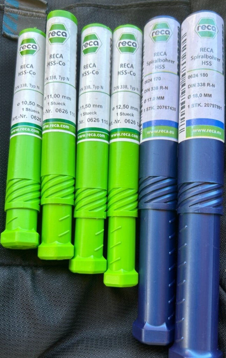 Prodám nové vrtáky HSS-CO dle DIN 338 - vybrušovaný povrch s válcovou stopkou. Od německé firmy RECA.