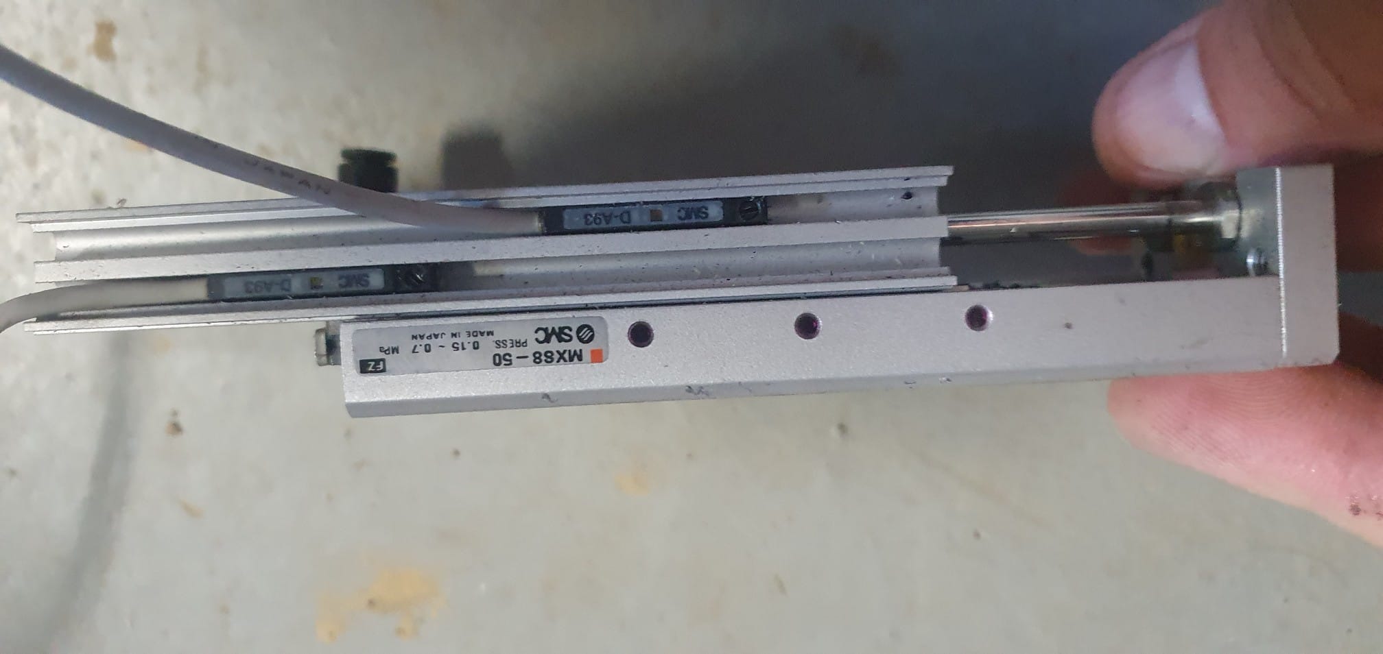 SIEMENS SIMATIC RF180C + modul RF240R (na fotce výše) + kabeláž - 500Kč Píst FESTO DSNU-12-200-P-A - 250Kč Pojezd FESTO - DPZ-25-10-P-A se snímači - 600Kč Chapadlo FESTO s čelistmi HGPL-14-20-A-B - 1000Kč Pojezd SMC MXS8-50 se snímači - 500Kč Píst SMC CD85E12-160-A se snímači - 250Kč Píst krátký CAMOZZI 31R2A016A020 - 300Kč Tiskárna na štítky - 400Kč