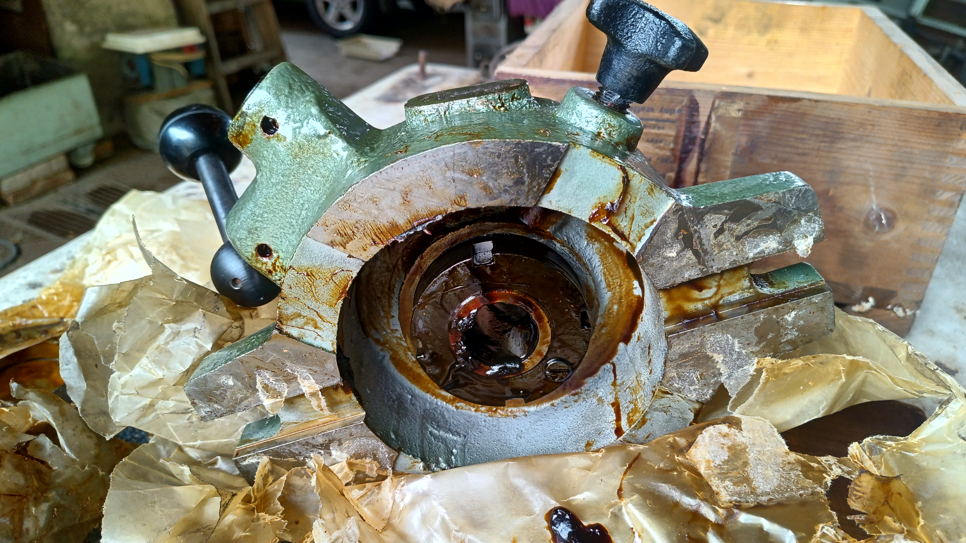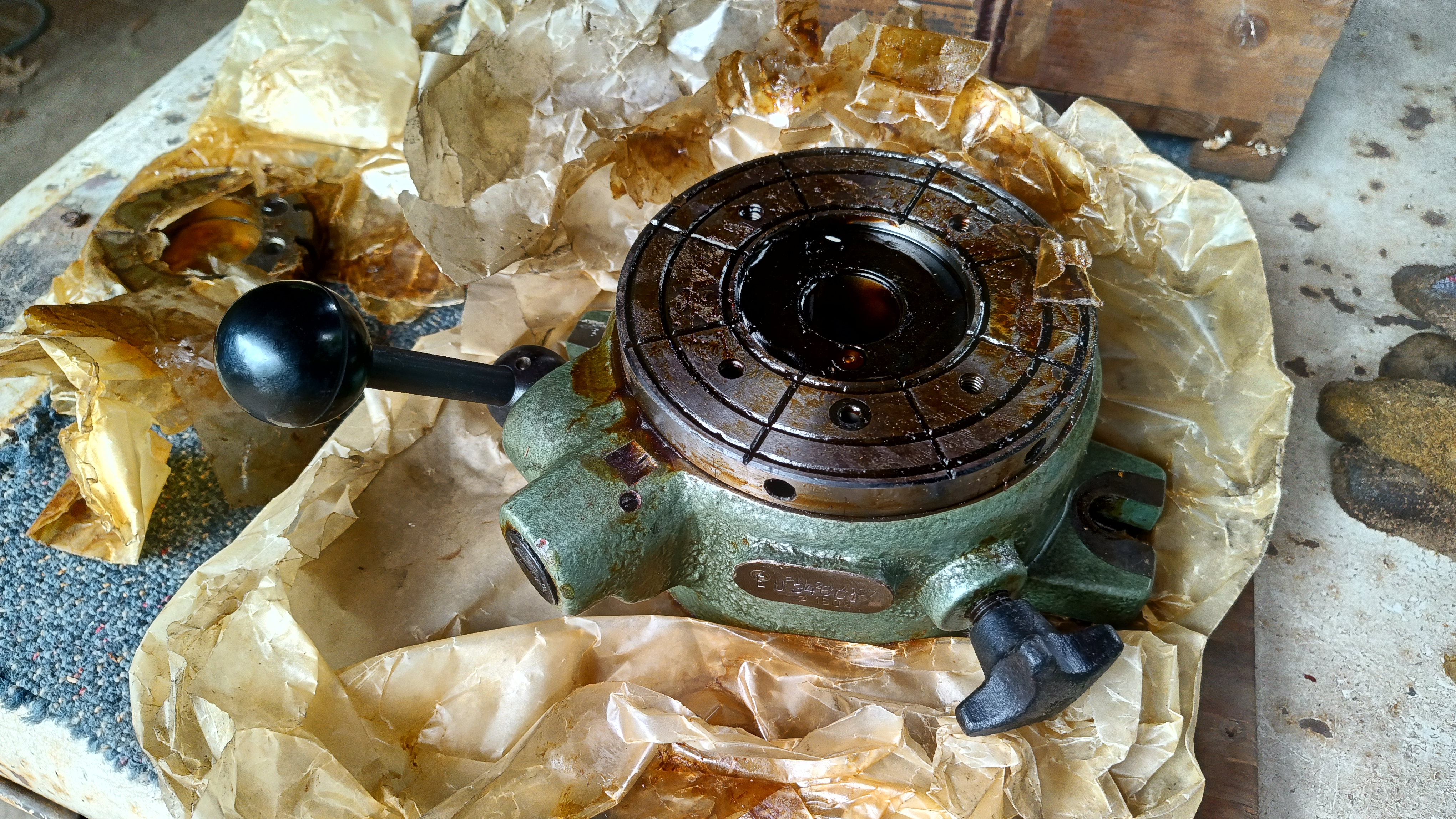Průměr 150mm, ve středu je Mk4, v ploše 4* M8 a díra s pouzdrem pro určení polohy. Plynulá brzda + aretace na polohy dle použitého dělícího kroužku. Kroužky 12 a 24 poloh, vyměňují se po demontáži stolku z těla. Páka s koulí slouží k odemknutí, otáčení se provádí rukojetí (tyčkou) pomocí děr zboku stolu, zamknutí samočinně pružinou.