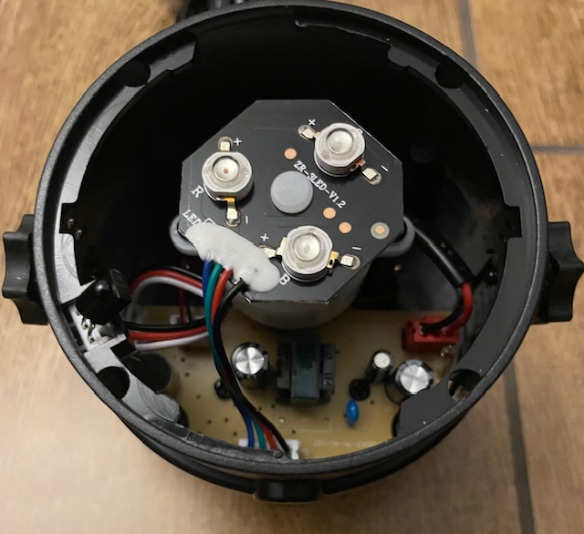 Možno to rozložit na komponenty a využít ve vlastní tvorbě (vysocesvítivé led diody - červená, modrá, zelená, motorek, dálkové ovládání - vysílač, přijímač, mikrofon, IR dioda, kabel 230V)