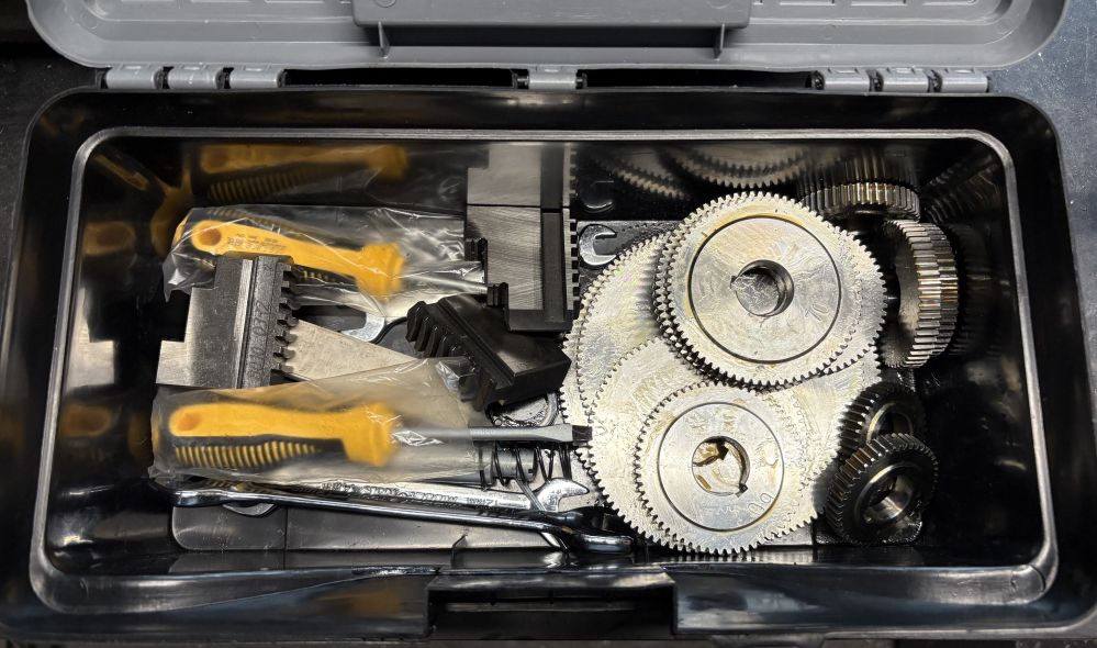 Součástí je vše, co bylo přiloženo od německého prodejce, ochranné prvky jsou demontované, ale k dispozici. Navíc mohu přidat sklíčidlo do koně, pár nožů VBD 12x12 a litinový hranol s čepem na Multifix, do T-drážek příčného suportu, který zlepšuje tuhost.