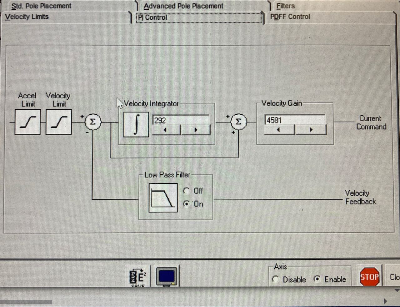 Je prirozene, ze zvysovanim obou PID-P i PID-I polohoveho se ti system rozkmitava. To muze byt prebuzenim regulatoru bud proportialne - to byva velmi rychle a tvrde kmitani. A nebo integralne - pomalejsi, harmonictejsi oscilace.
