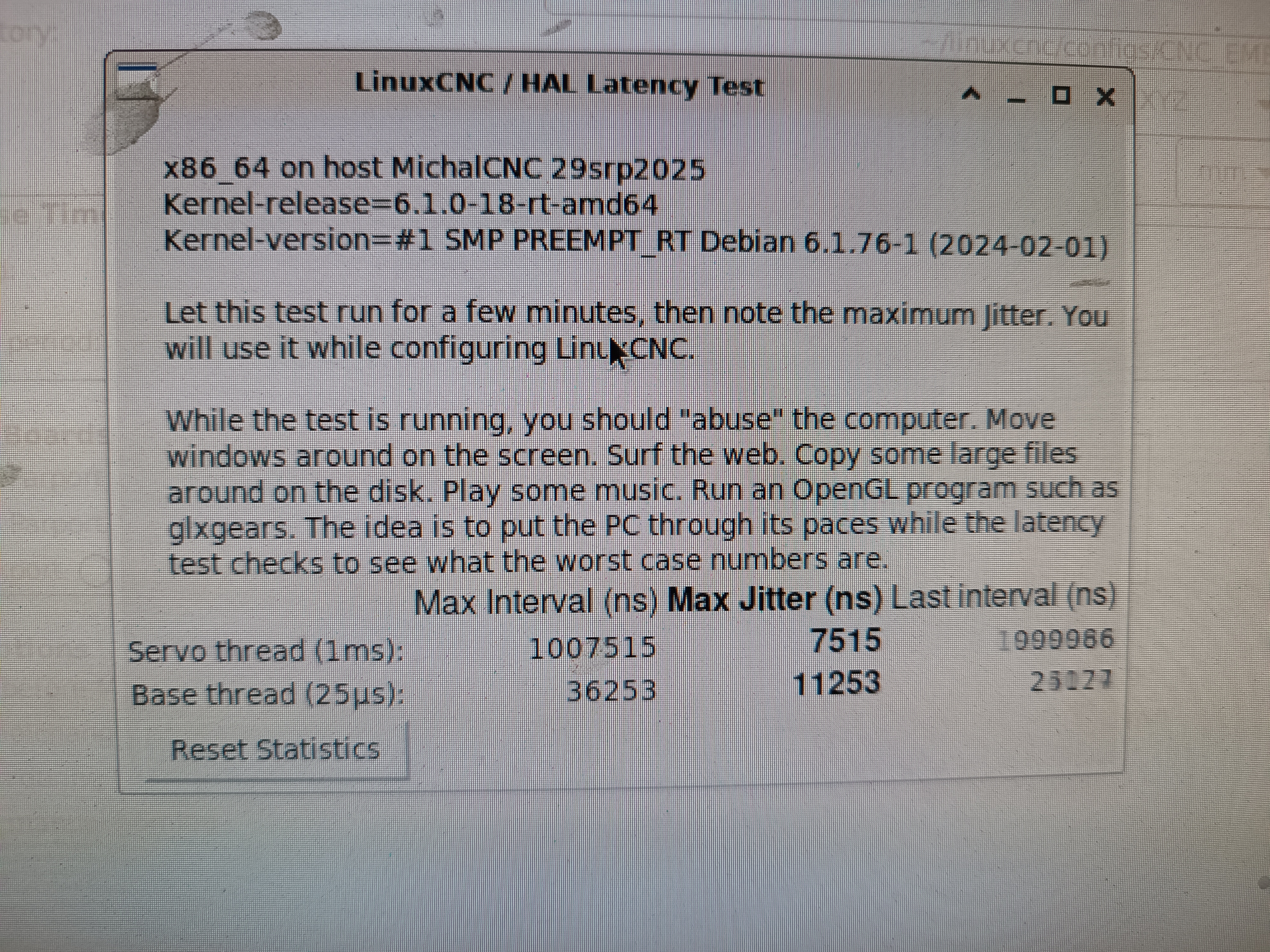 Mám čínské CNC 6040 řízené Linuxem. Mám tam nový řídicí počítač bez paralelního portu, proto jsem pořídil na doporučení Mesa 7i96. Nějak jsem to dokázal zapojit, rozchodil jsem to a běhá to, ale teď mi občas LinuxCNC dává chybové hlášky. Nevypozoroval jsem žádný spouštěč a hláškám moc nerozumím. Dělá to jak při programu, tak při ručních posuvech (tady bych řekl častěji, ale zkoušel jsem zběsilé posuvy a nic, pak někdy při klidném to vyběhne), nezávisle na rychlosti posuvu nebo třeba snaze pohyby ručně zkusit brzdit. IP adresu mám nastavenou nějak 192.168.1.121, ale prý lze použít i 10.10.10.10, nevím, zda by i to nemohlo být řešením.