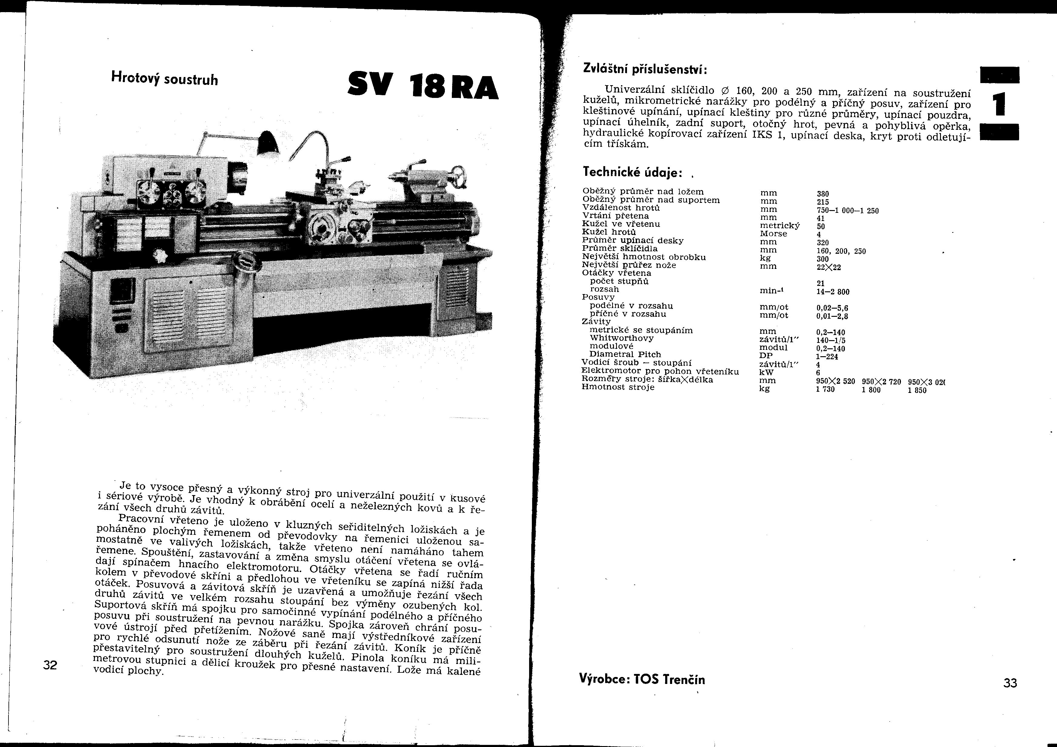 Tak jsem vyhrabal pasport a je to skutečně tak jak píše Audina. Na tažný hřídel se montují závitové předlohy. Ale o možnosti řezat více stoupání na jednu předlohu se tam nepíše. Je to ale zase spíš pro sériovku, protože se musí ta tyč vyndat aby se předloha dala vyměnit. Tak další plus pro hrotový soustruh, tam stačí pro většinu metrických závitů jen přesunout páky bez výměny kol.