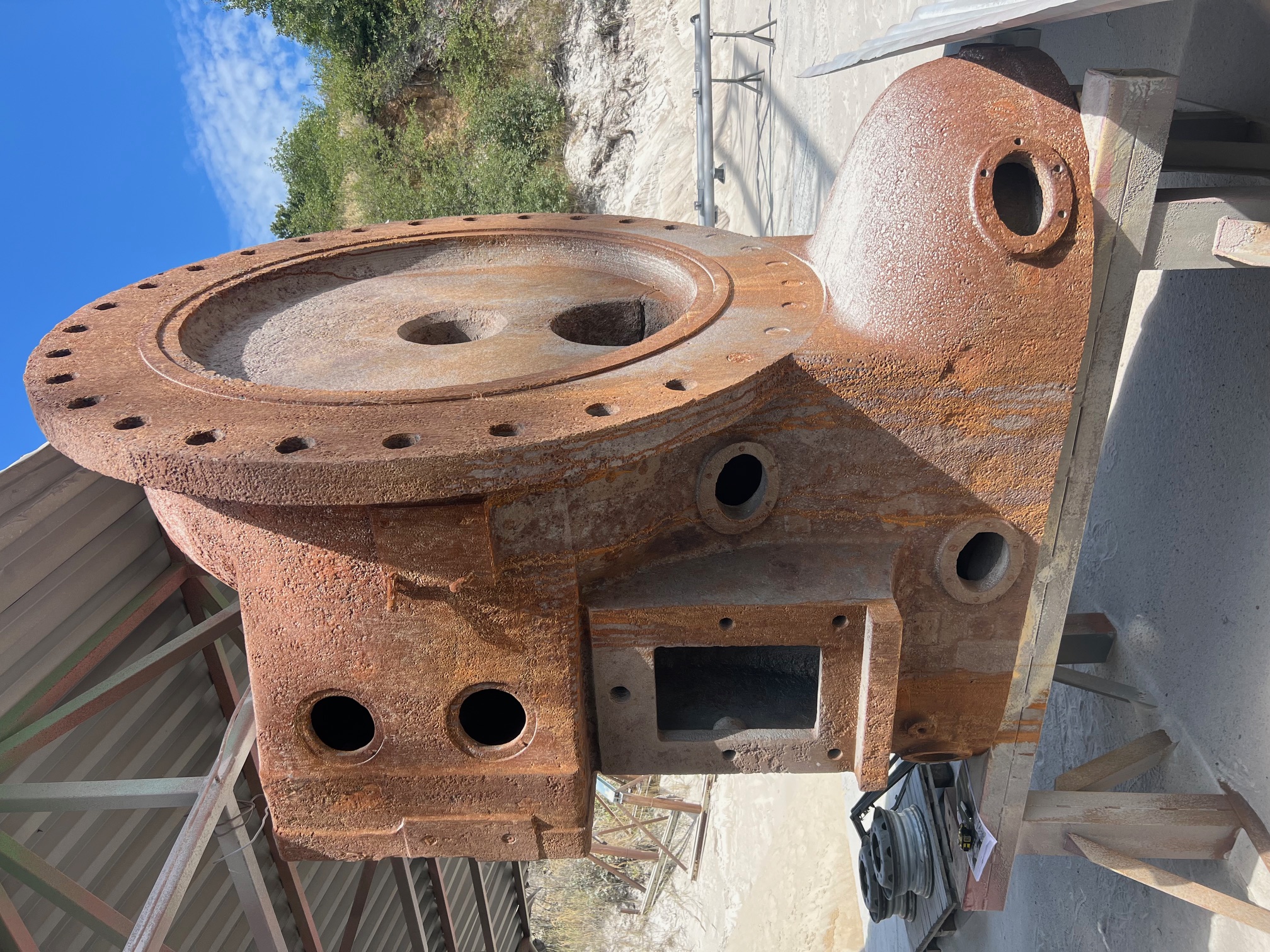 Mě jedině napadlo, jestli to není čelní díl z nějaké turbíny. Na fotce úplně dole (alespoň jak mě se to zobrazuje) je u toho středového otvoru udělané sražení hrany. Tj. čekal bych že tam přijde zasunout buďto hřídel právě třeba turbíny a pak by tam bylo nějaké kluzné pouzdro s kterým můžou souviset ty dva otvory na boku symetricky kolem středového otvoru. Nemají žádné otvory na šrouby, takže už se k nim nic nepřipojuje přírubou na rozdíl od dalších kruhových otvorů a toho jednoho obdélníkového. K tomuto dílu by pak tou velkou přírubou byl připojen válcový plášť turbíny a z druhé strany turbíny by bylo něco podobného.