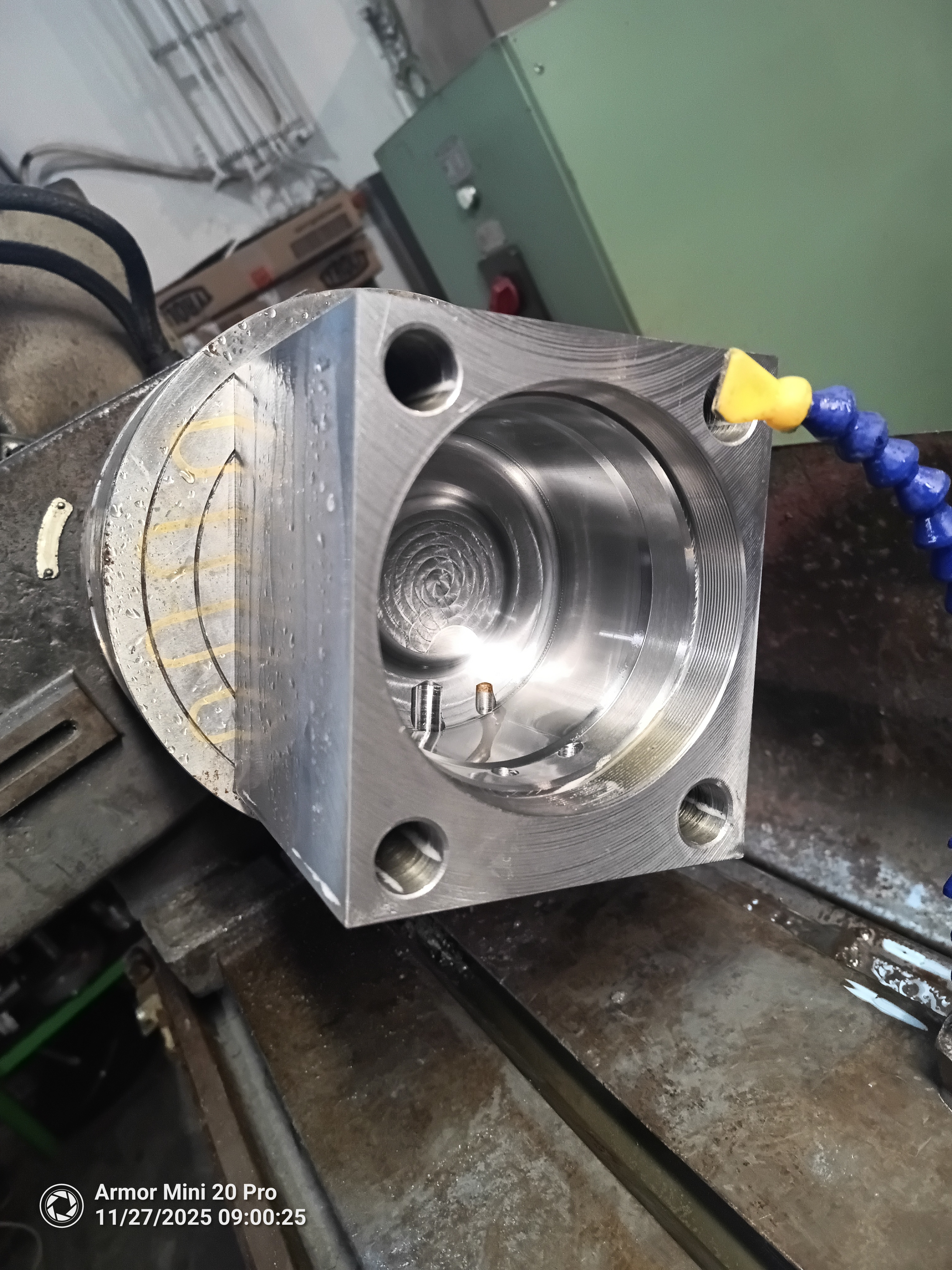Vyrábali sme dva hydraulické valce, funkčná časť D124,8+/-0.01 brúsená pod Ra 0,4. Nakoľko všetko bolo excentrické, brusilo sa to na magnete.