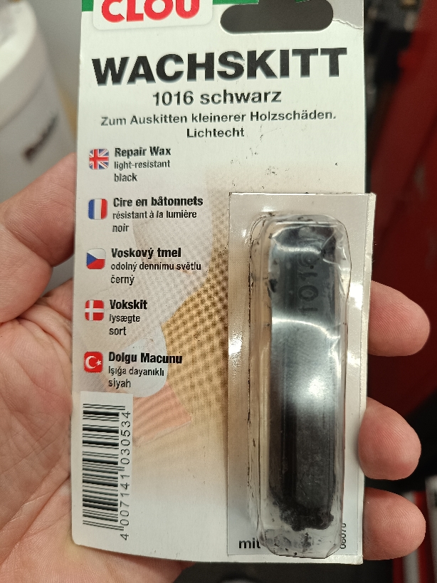 Niekde som okukal použiť na tento účel opravný vosk na drevo, majú v každom BauBau. Súčiastku mierne nahrejem, napatlem a po schladnutí prebytok zotriem a preleštím.