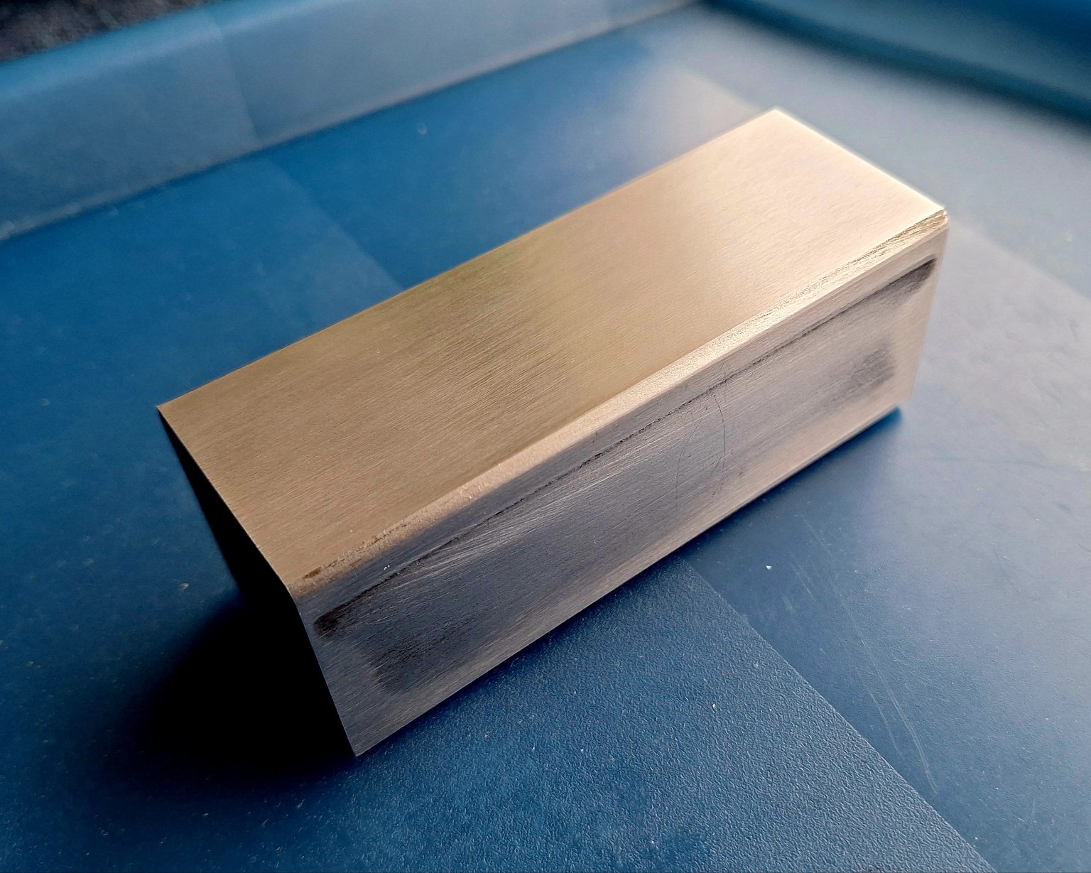 Mezitím zvažuji i možnost vyplnit to "normálně" a povrch lakovat bezbarvým lakem, včera jsem ho zbrousil na pásové brusce a přijde mi překvapivě pěkný (viz horní strana).