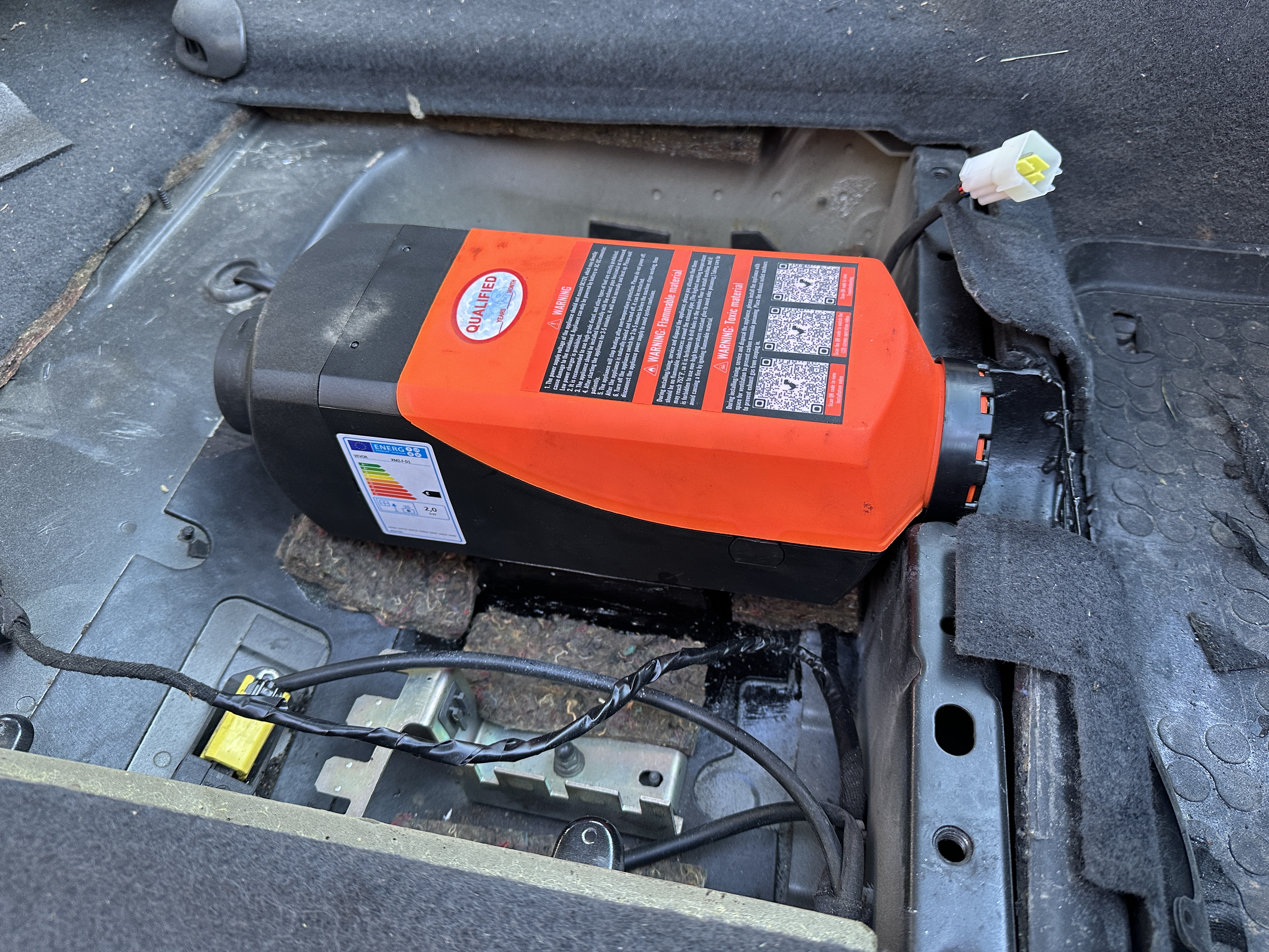 Moje auto má naftový príhrev motora Eberspacher, ktorý raz ide a raz nejde a funguje len pri naštartovanom motore. Zvažoval som investíciu do opravy a pripadny upgrade na nezávislé kúrenie. Avšak cena novej riadiacej dosky aby vôbec fungoval je 270€ a prerabka na nezavisle kurenie je ďalší náklad a kopec zasahov do systemu, rozhodol som sa pre naftový ohrievač Vevor 2kw. Zvolil som verziu s diaľkovým ovládaním a bluetooth pripojenim cez appku. Ovladaci panel umožňuje ovládanie rôznymi stupňami ohrevu, alebo sa prepne do režimu termostatu ako to je bežne doma.