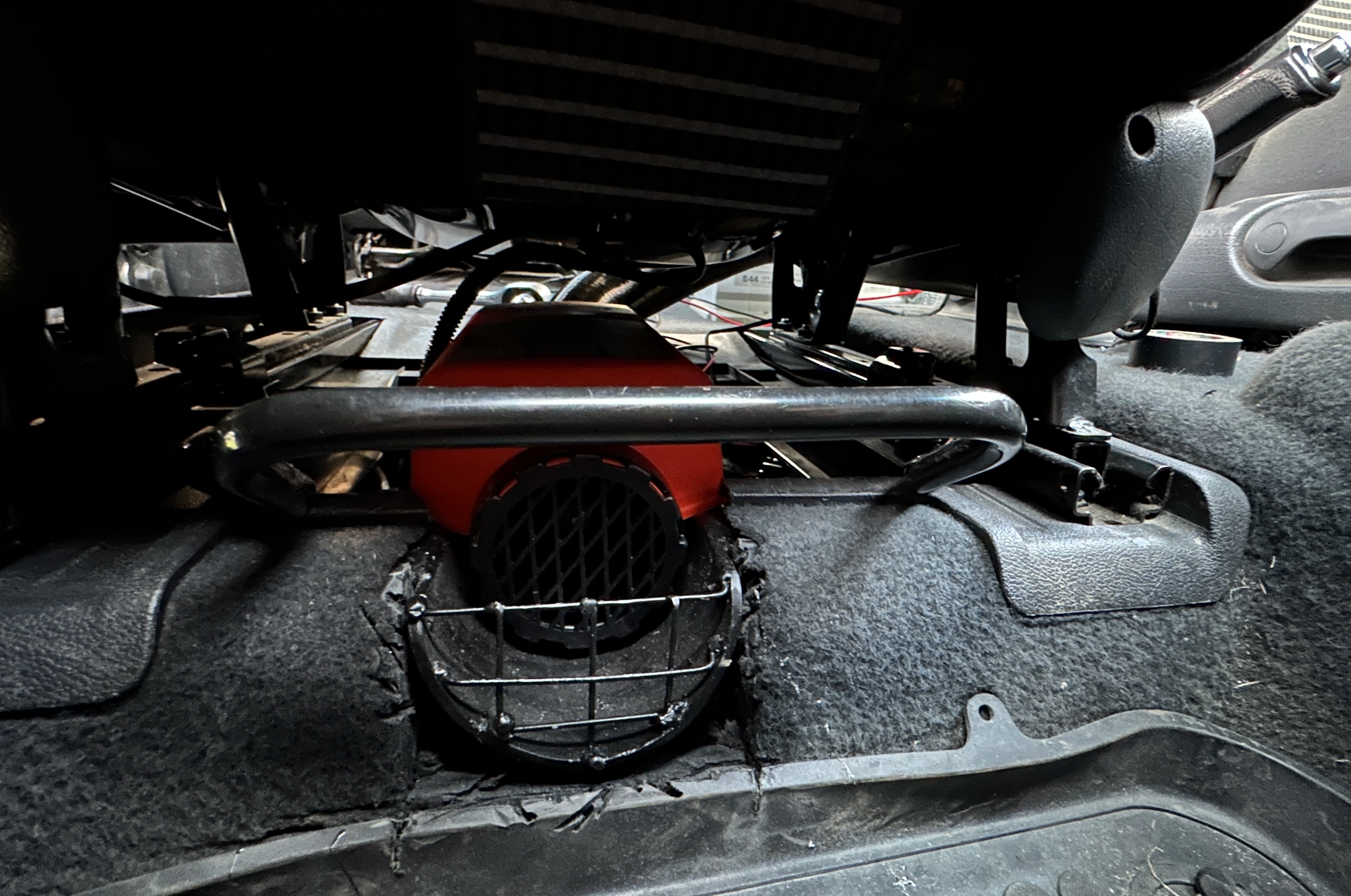 Nejake videa na yt, pokec na fórach a išlo sa na to. Po zvážení kde s tým, som nakoniec tomu našiel miesto pod spolujazdcovou sedačkou. Aby to tam pekne sedelo, musel som do toho plechu pri nohách vyrezať poloblúčik na nasávanie vzduchu. Pridal som tam aj mriežku aby to trochu ochránilo pred nacucnutím niečoho ku saniu vzduchu.