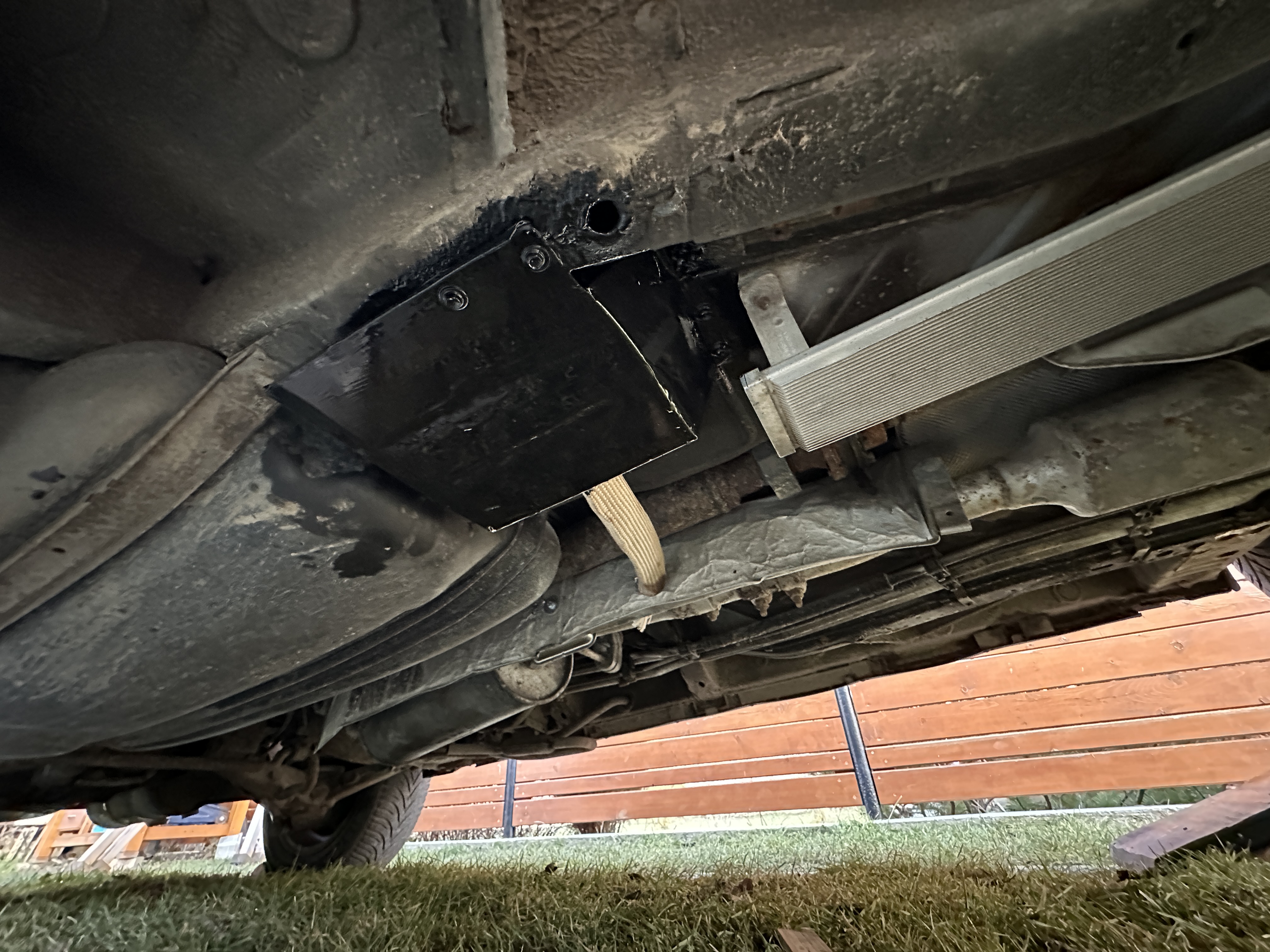 Zospodu potom planujem nejaký deflektor aby na to nehádzalo zospodu vodu či sneh z vozovky. Miesta je tam dosť.