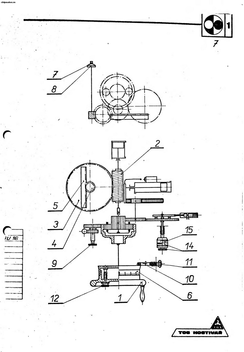 Válec vzadu dělá odskok - tj. těch 16mm (doraz/doraz). Malý válec (úplně vpravo) dělá pohon bubínku (14,15) kde si nastavíš vlastní dráhu pro broušení (tj. přídavek + bezpečná vůle před kusem, abys do něj v cyklu nenajel rychloposuvem). Celý to se pak sečte na tom šnekovým kole, to pak přes ten pastorek pohání ten hřeben (5), co dělá pojezd brusného vřeteníku po jeho valivým vedení. Pomocí mikrokopusuvu (7) to pak ještě můřeš ručně dohnat na přesnou míru .Celý to je takhle složitý, abys mohl jezdit i šikmým přísuvem. Když brousíš v díře, tak vyřadíš odskok, když brousíš zápichem, tak si zvolíš cyklus odskok, přísuv, doraz, časovač na vyjiskření a odskok opět dozadu, když brousiš s oscilací, tak si k tomu ještě přidáš oscilaci a předvolíš, kde to bude v úvrati (jedna nebo druhá nebo obě) strany přidávat.