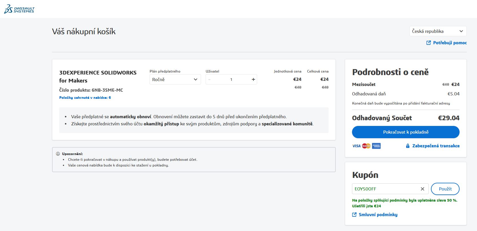 Mimochodem, ta licence SW for Makers byva pravidelne za pulku, 24 nebo 25 Eur. Staci si pockat a koupit online primo ze stranek Dassaultu.