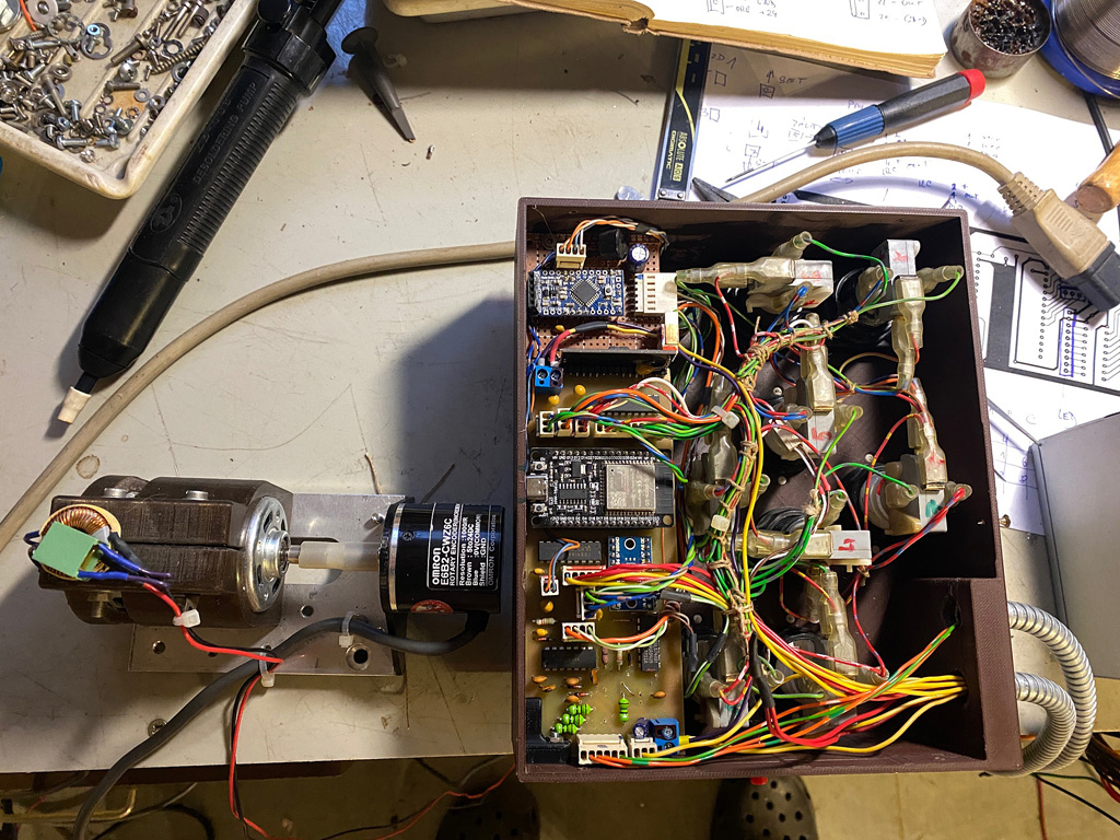 Podobných konstrukcí bylo na netu několik, asi nejlepší byly ty ruské, které po krátké době začali dělat komerčně němci. V té době jsem jsem kouzlo arduina teprve objevoval a můj první pokus sice fungoval, ale nic moc. Pár dalších nápadů a nakonec finální verze - emulace vložených ozubených kol a tím naprostá odolnost proti změnám otáček při řezání závitů. Vše se podařilo realizovat a od r. 2022 jsem vše na mé "emeně" provozoval.