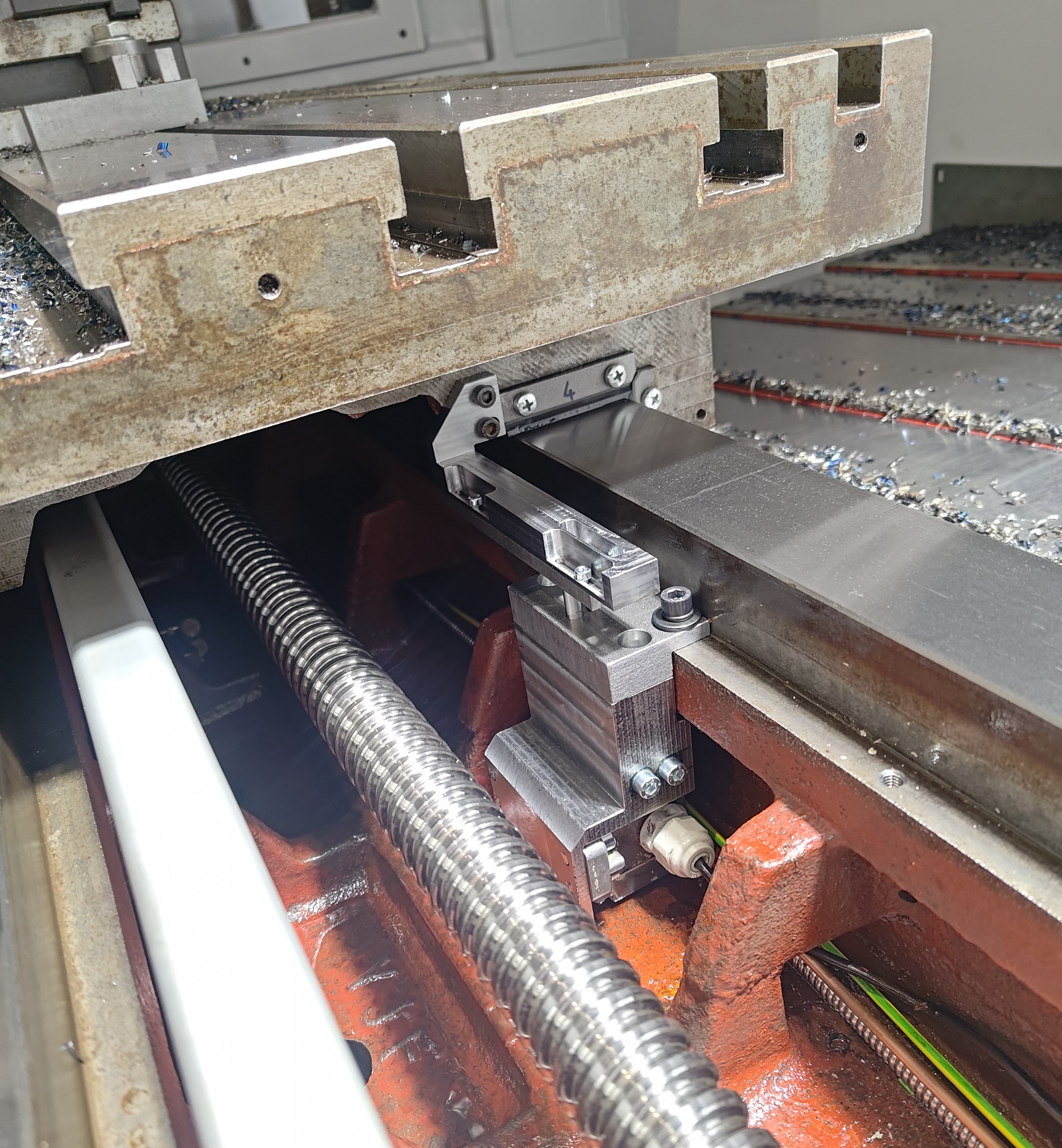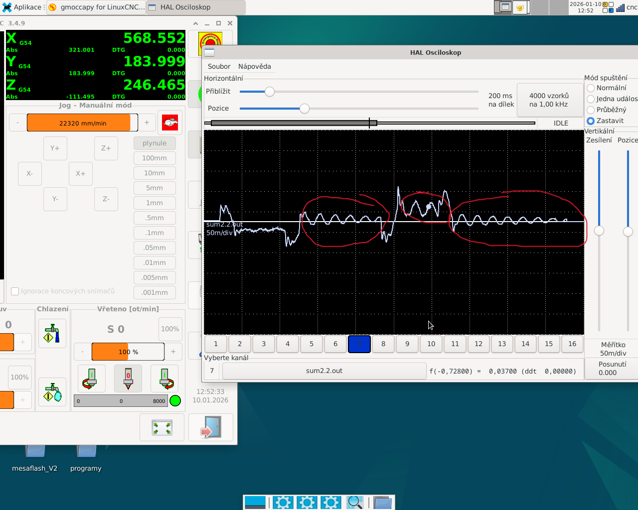 Protizávaží vřetena dělalo slušnou paseku s polohou. Řetěz mezi protizávažím (270kg) a vřeteníkem (cca 350kg) fungoval jako pružina, musel jsem protizávaží odpojit.