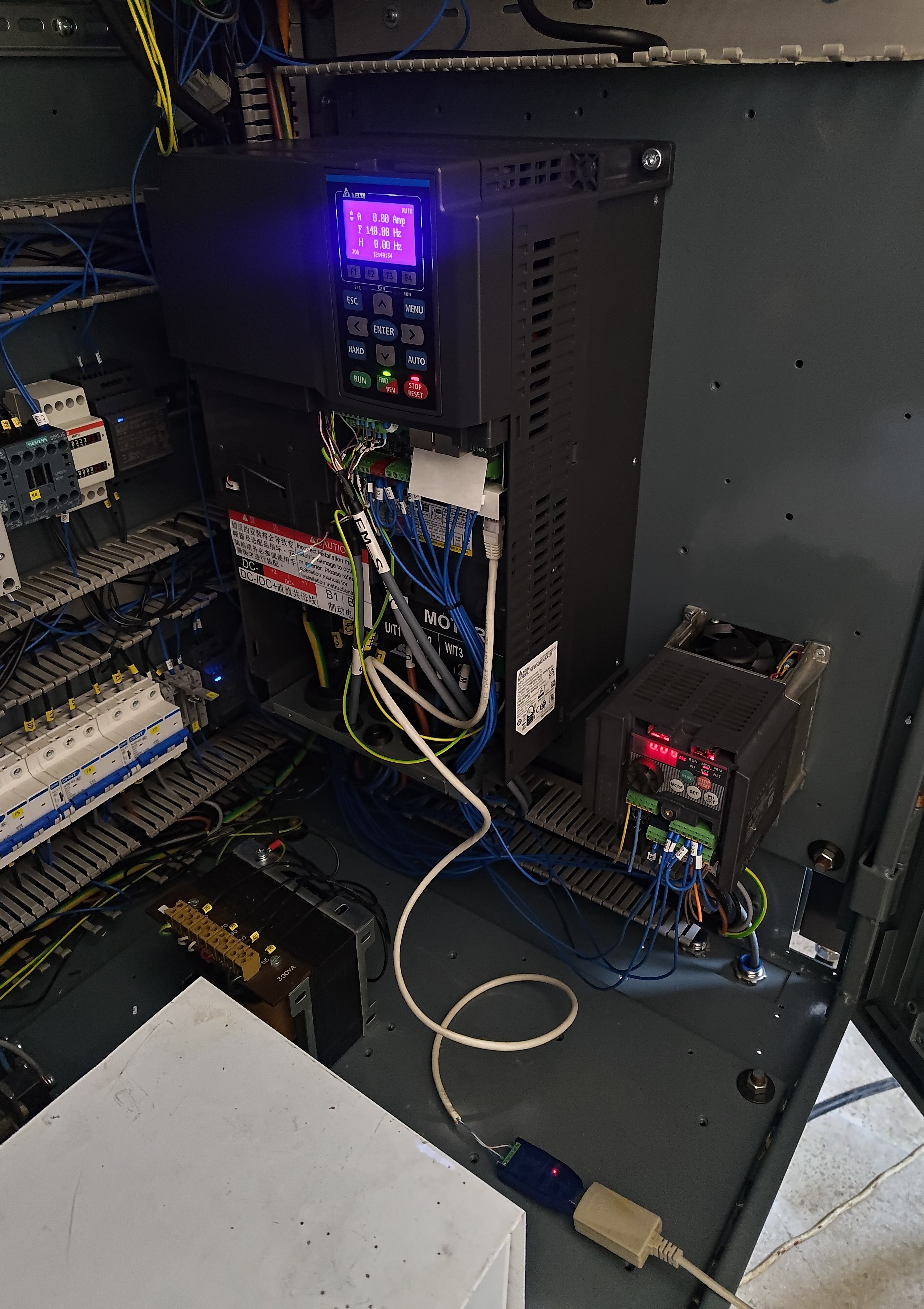 Ze začátku jsem bojoval s problémy s aplikací na ladění Delta serv - ASDA soft. Problém byl když jsem chtěl mít pc před strojem abych viděl kam se co pohybuje a měl panel na dosah, usb kabel 4m do rozváděče to nedával a pořád vypadávala komunikace, pomohl až USB repeater.
