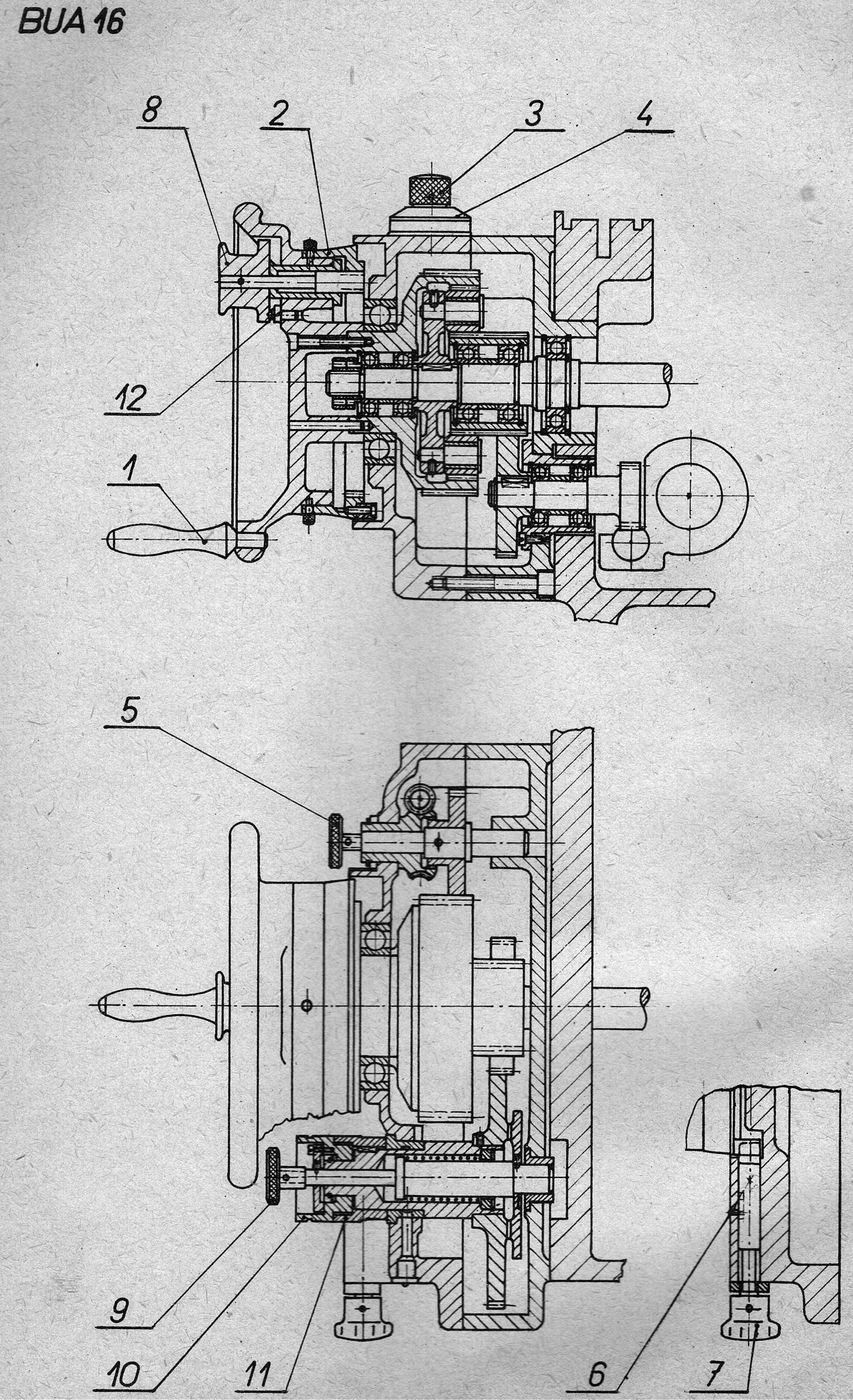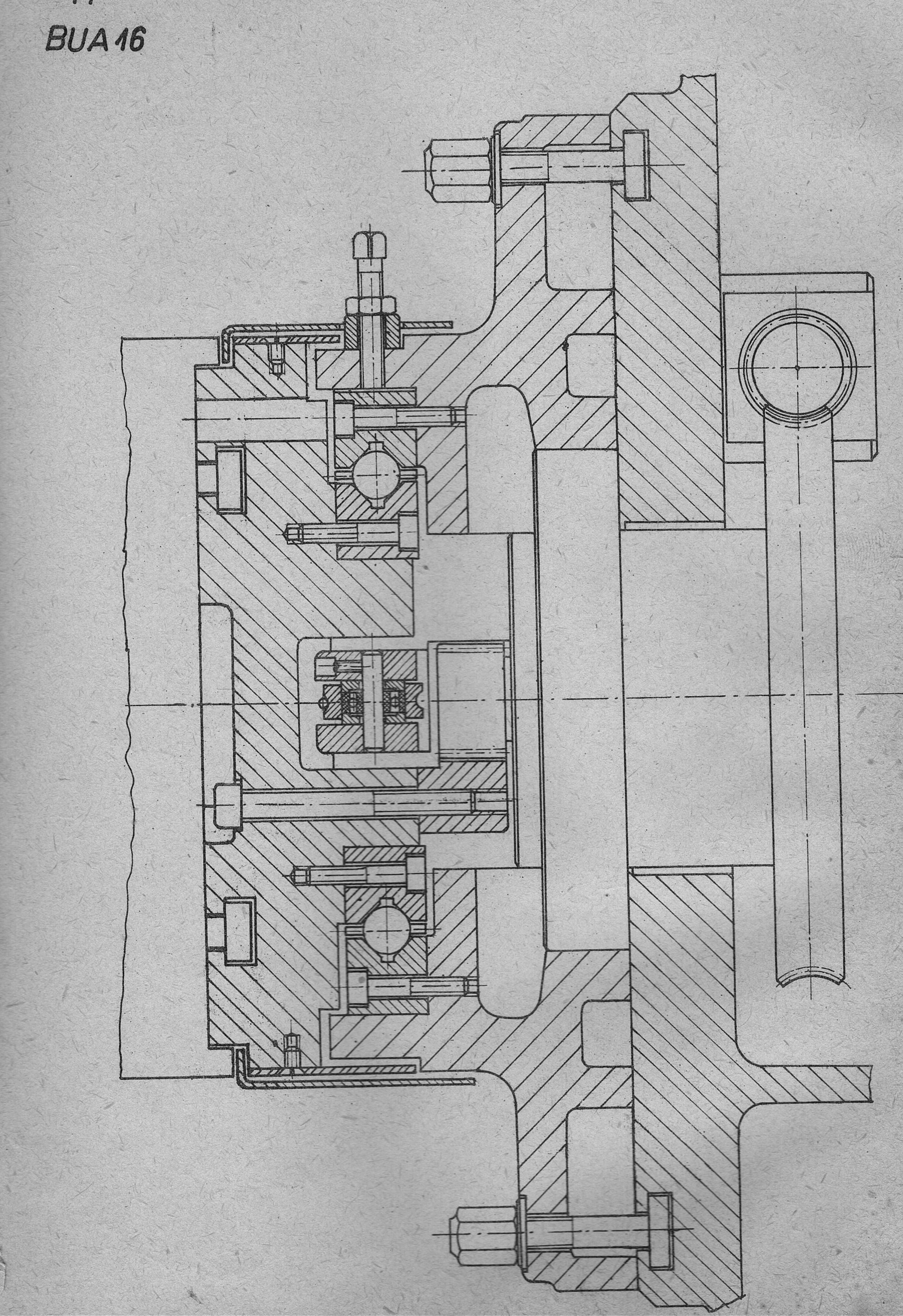 Stará BUA16A má oba vřeteníky kluzně (v tom manuálu na BU je pracovní na ložiskách) , brusný má u BUA kroužkový mazání. BU brusný je úplně jiný (ložiska, vřeteno, vřeteník), má oběh. Valivý vedení je u BUA na koulích, BU (ta v manuálu) je na jehlách (válečcích). Koníky jsou jiný, hydraulika taky, není nucený oběh v brusném vřeteníku, pro přestavbu na děrovku se vyměňuje celý "agregát" (vřeteno s tím velkým odlitkem - pohonem) - to je taky jiný. Vzájemně asi můžou pasovat, ale prostě jsou jiný. To samý pohon unášecí desky - u BUA byly dvě varianty - jak plochý řemen (takový průhledný plastikový peklo, stejný jako je třeba použitý na náhon třívřeteňáku u prvních AD4), tak i dva klíňáky (to je v dokumentaci viz níž). Problematický je oboje. Naopak v tom ruským manuálu je ozubený řemen, ten sice táhne dobře, pro změnu ale se kopírují zuby na dílec - prostě ozubený řemen na pohon desky nebo dokonce pracovního vřetene (když se to spojí tím čepem na živý vřeteno), opravdu není u brusky dobrý nápad.