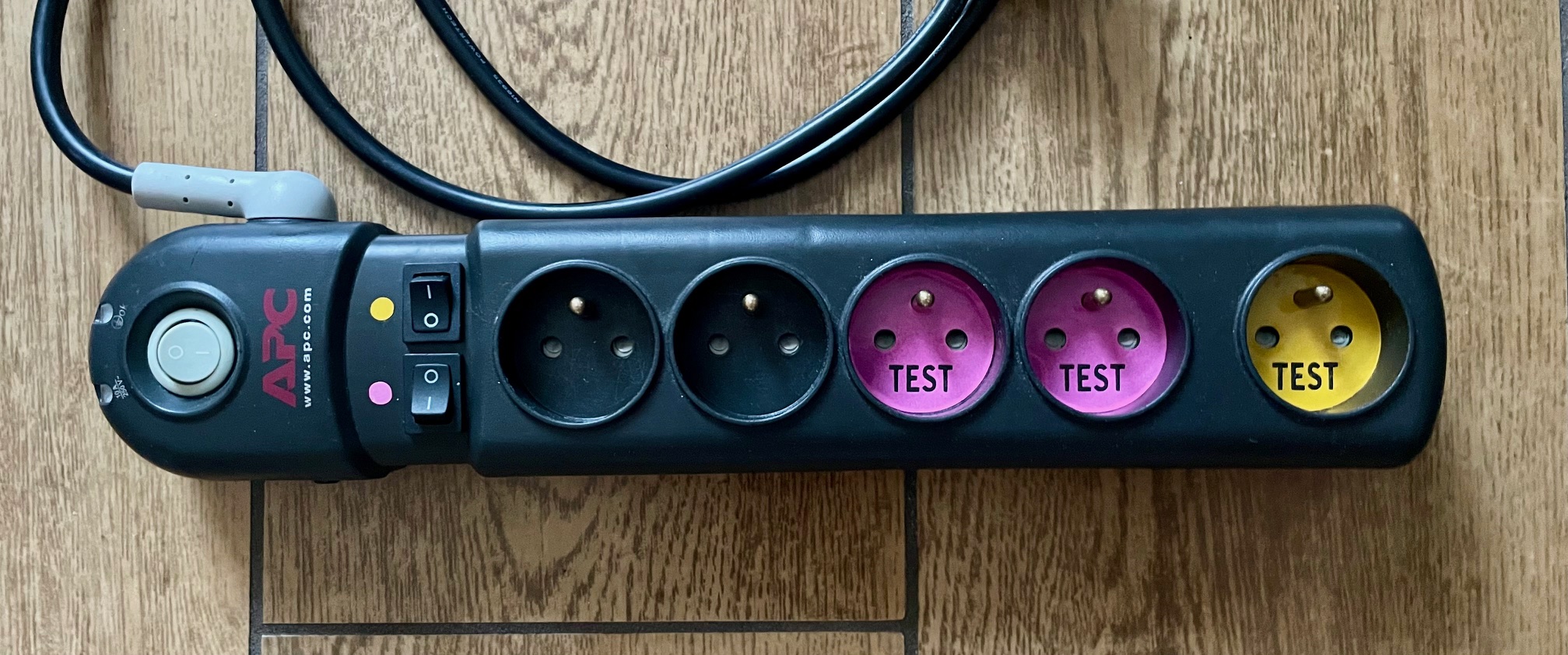 - první dvě zásuvky jsou odděleny od zásuvek testovacích a jsou to tedy obyčejné zásuvky