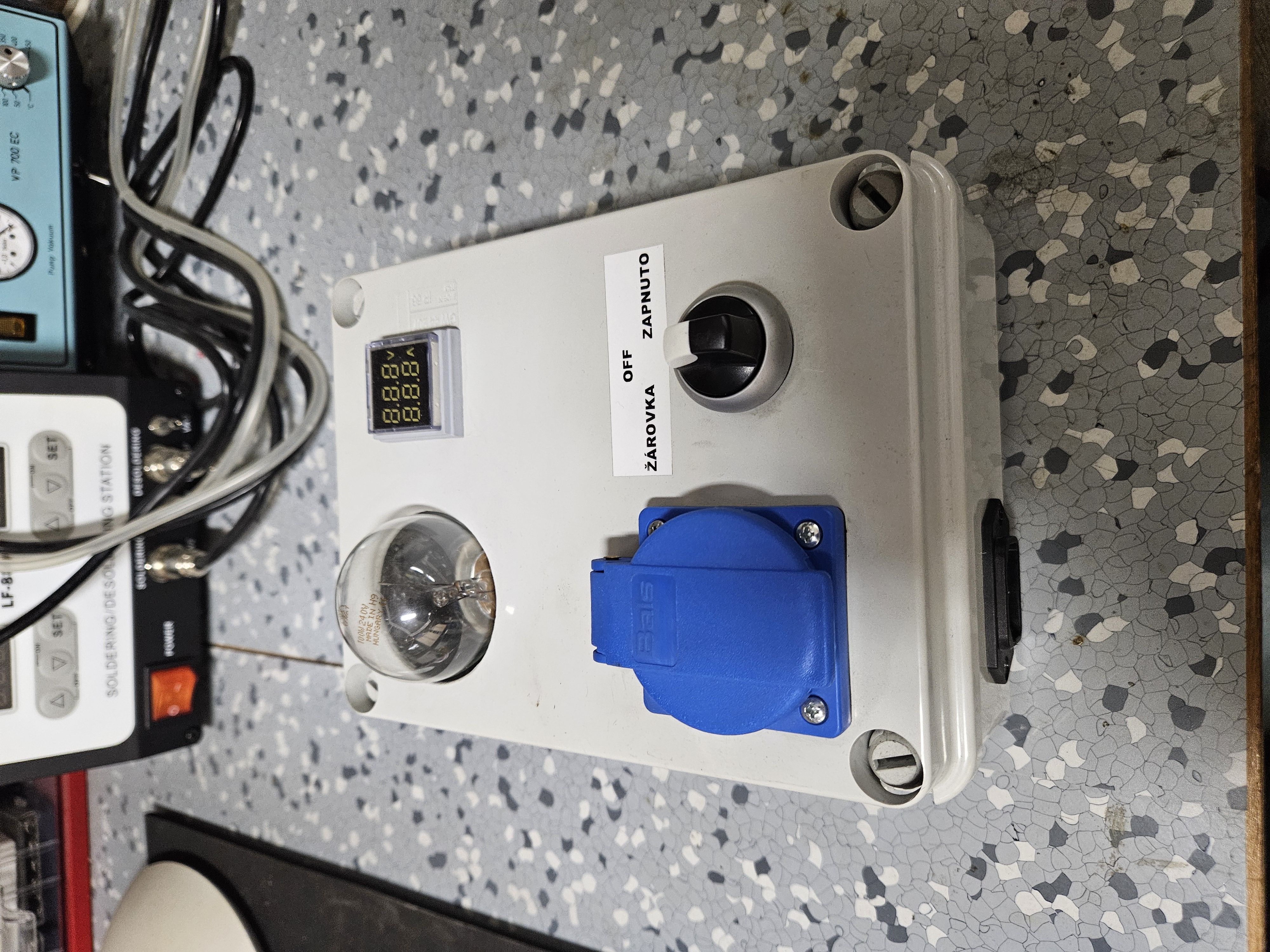 - poslední zásuvka je určena pro adaptér s žárovkou a je připojena k testovacím zásuvkám -adaptér ještě Aliexpres bohužel nedoručit
