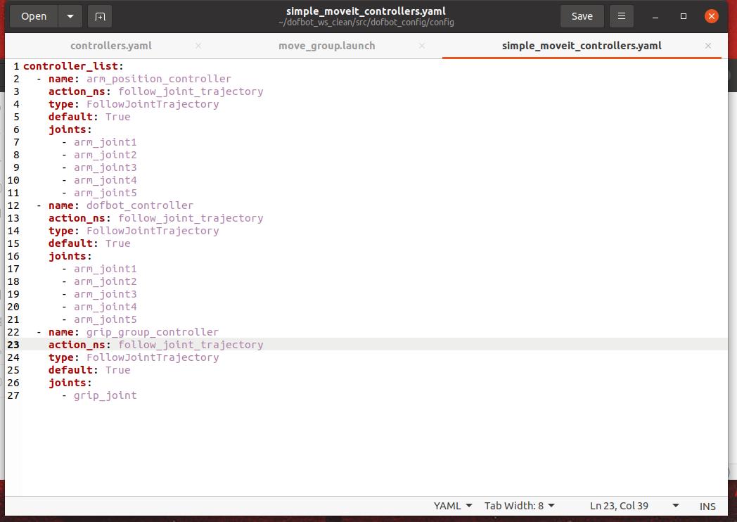 Nefunguje mi controller pro moveit + rviz + real HW. konkrétně chybí (asi) service followJointTrajectory. Při spouštění launch souboru vypadne hláška: No controller_list specified. Takže při inicializaci toho controlleru to nenajde tady tento service.