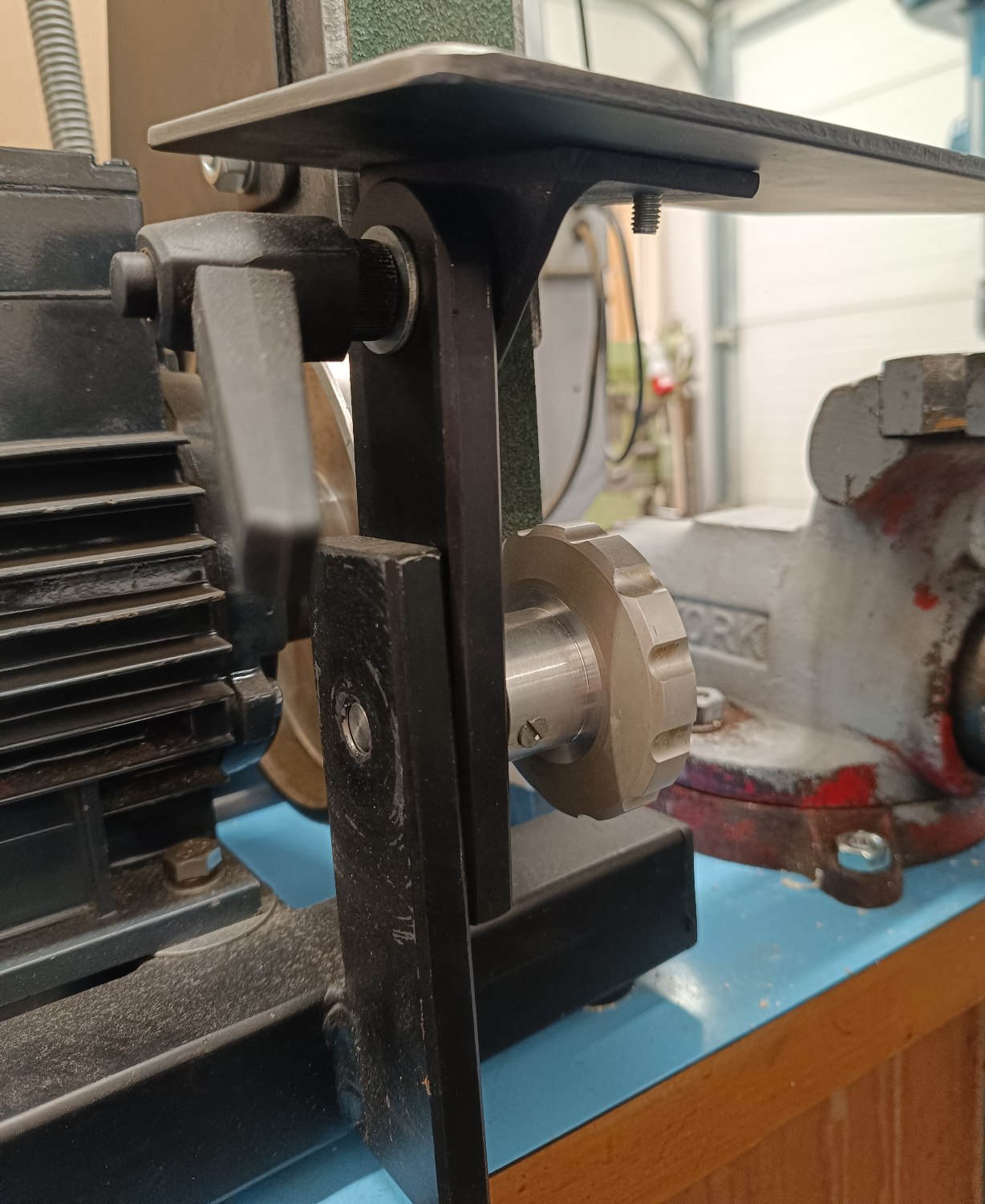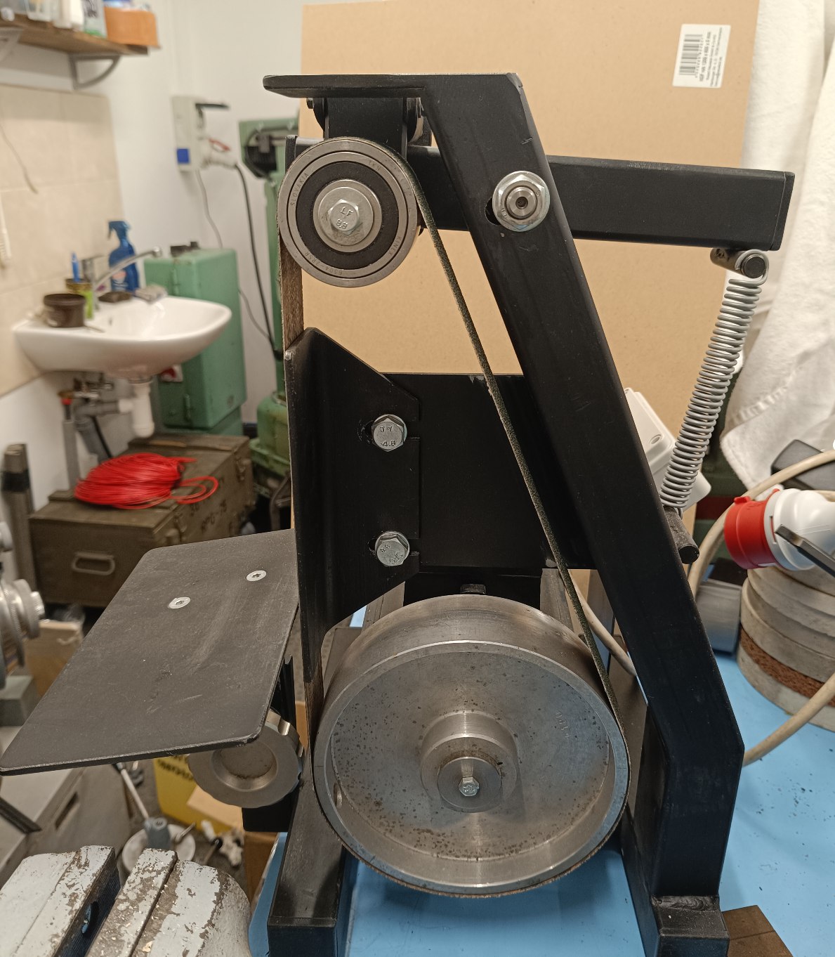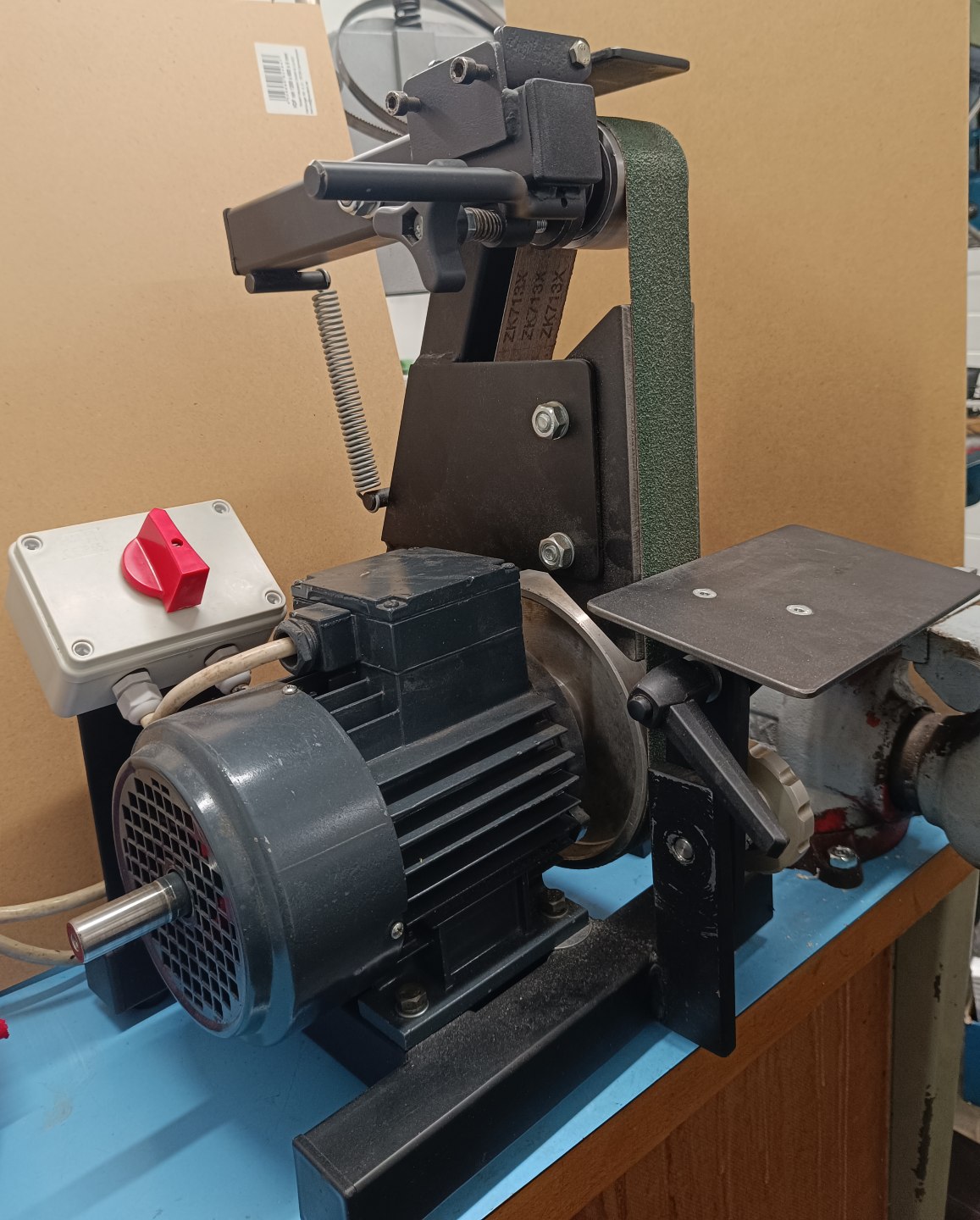 Inak tá prezentovaná konštrukcia je principiálne rovnaká ako brúska čo som kúpil (ja mám ale iba 2 kolesá). Ako najväčšiu výhodu tejto konštrukcie vidím že zaberie minimum miesta. Mám tam motor z hriadeľou na 2 strany, tak zrejme časom na tú druhú stranu motora pridám tanier na brúsny výsek a nejaký stolík.