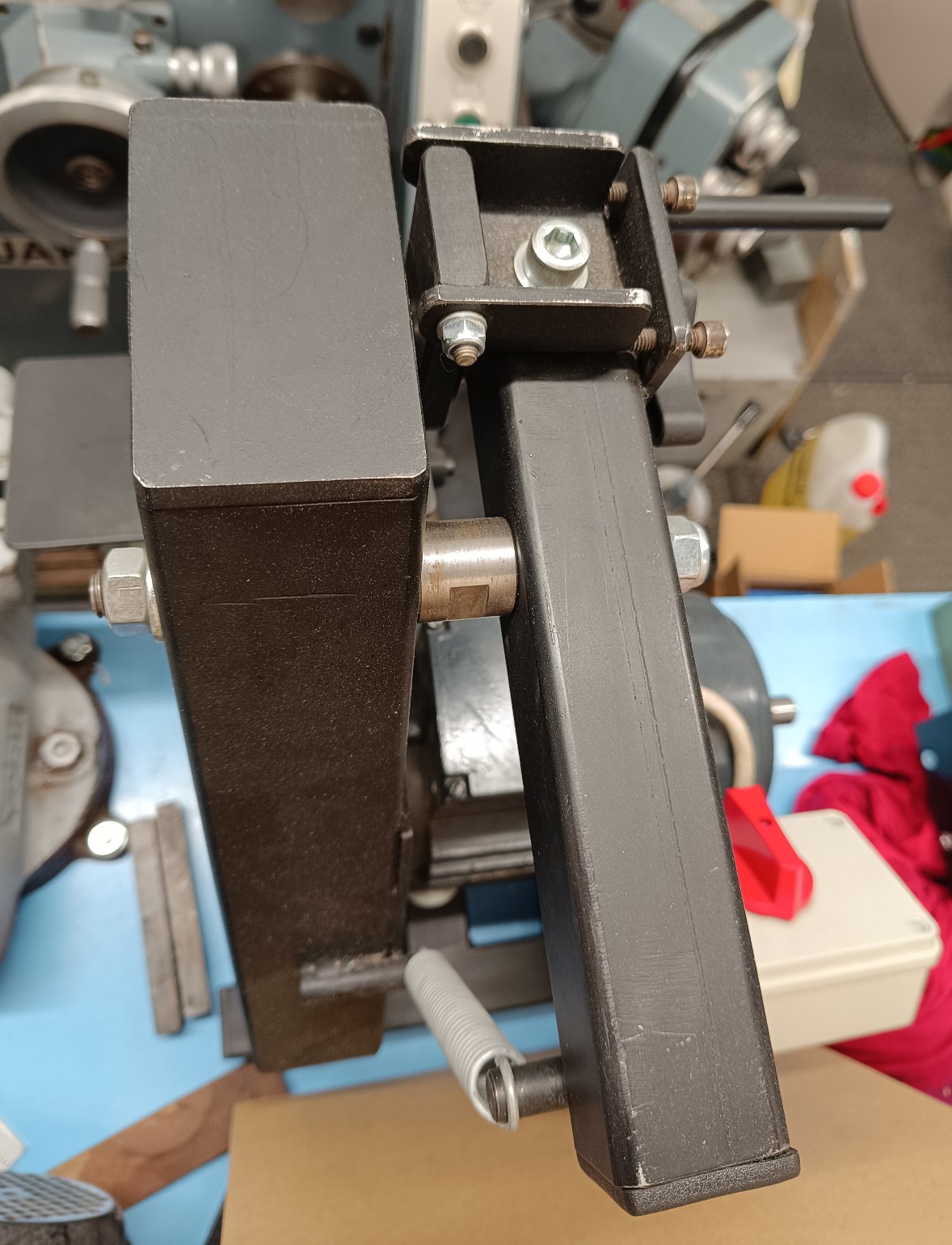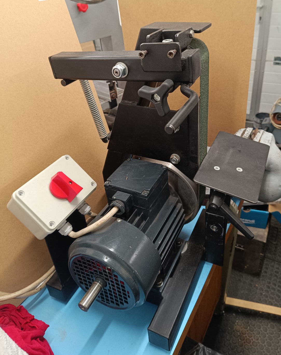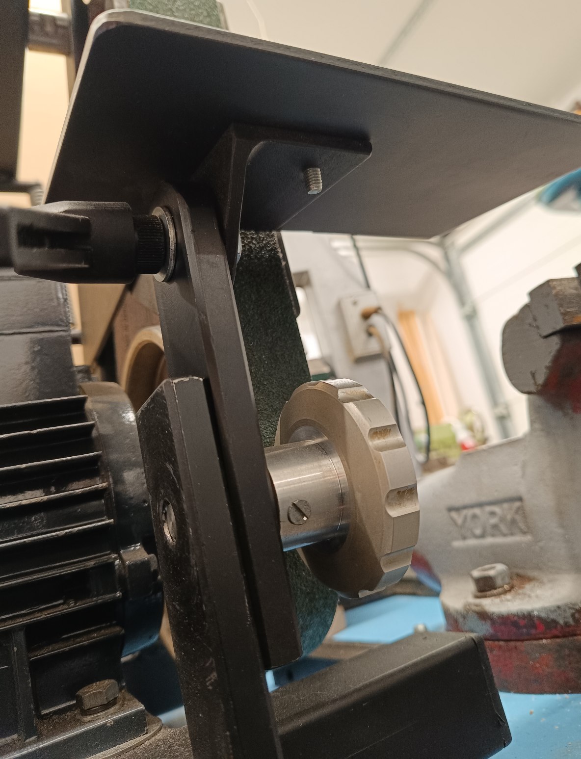 Inak tá prezentovaná konštrukcia je principiálne rovnaká ako brúska čo som kúpil (ja mám ale iba 2 kolesá). Ako najväčšiu výhodu tejto konštrukcie vidím že zaberie minimum miesta. Mám tam motor z hriadeľou na 2 strany, tak zrejme časom na tú druhú stranu motora pridám tanier na brúsny výsek a nejaký stolík.