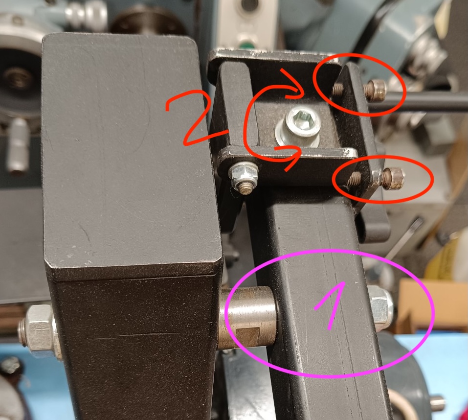 - jaký je smysl těch dvou šroubků, doladění osy malé kladky v horizontální rovině?
