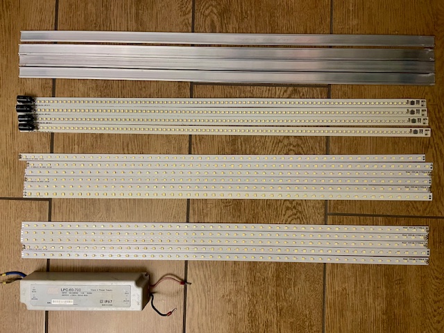 11ks hliníkových LED pásků 56cm/kus