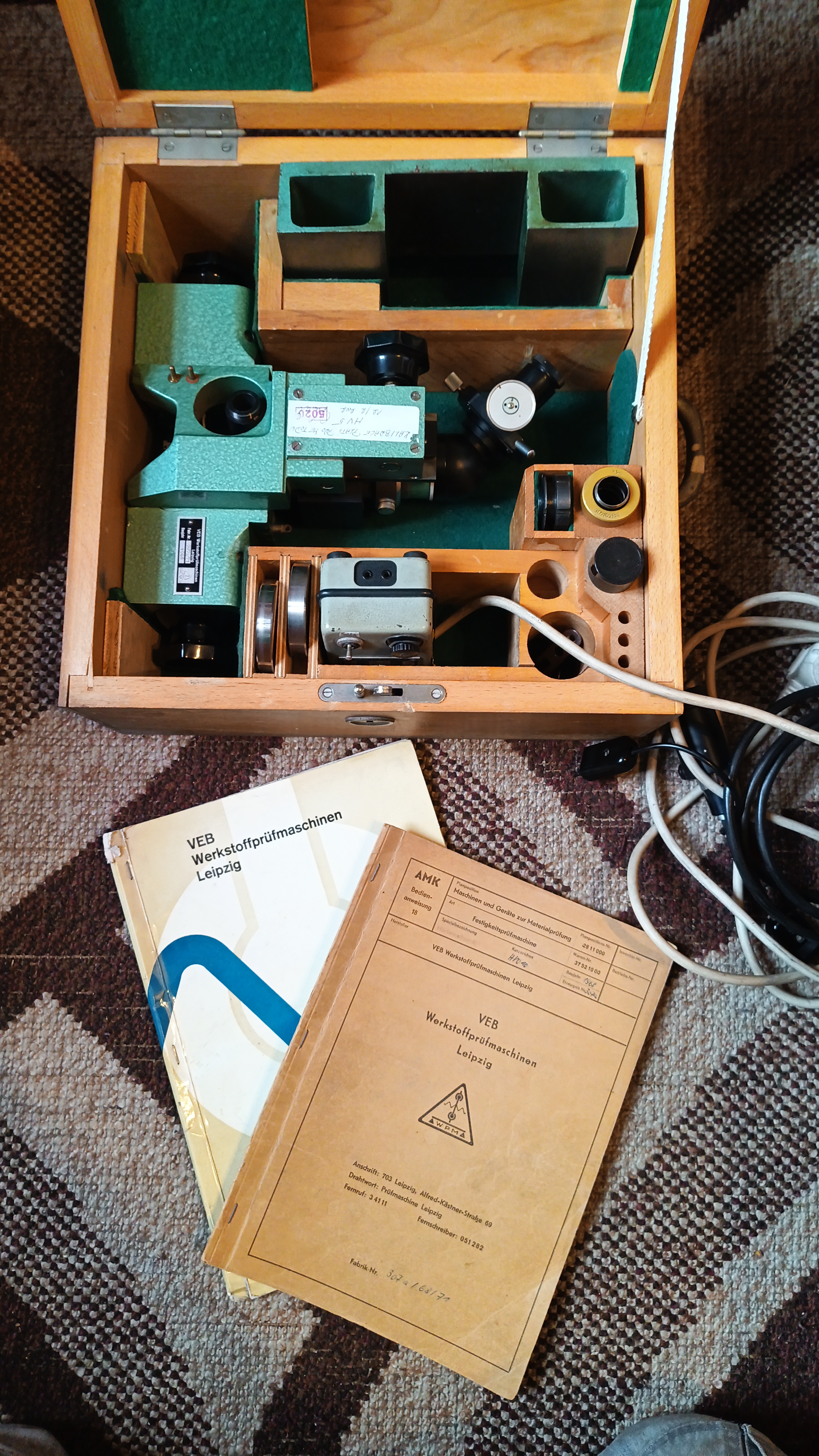 uklízím, prodám přenosný tvrdoměr, na štítku má poznámku, že je kalibrovaný pro metodu Vickers HV5. V bedně, se zdrojem, dva etalony, 2x německý návod a další drobota. Osvětlovače svítí, signalizace funguje - zdá se funkční, ale nikdy jsem s ním neměřil.