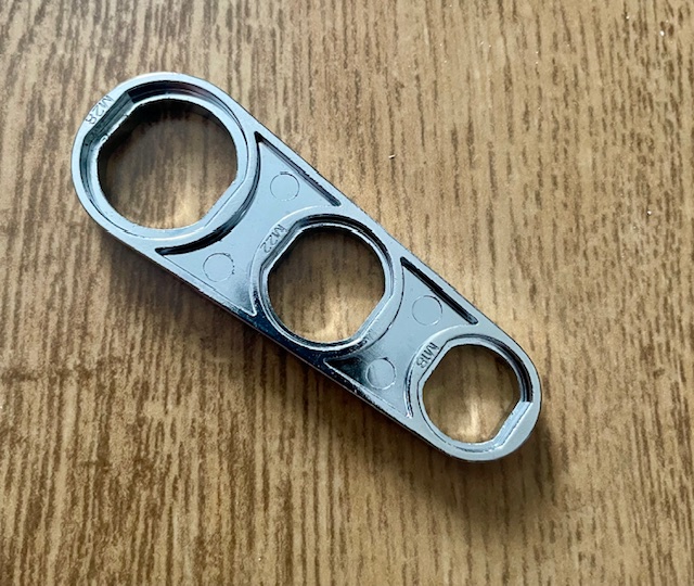 12. Kovový klíč na povolování perlátorů ve vodovodních bateriích M15, M18, M20, M22, M24, M28