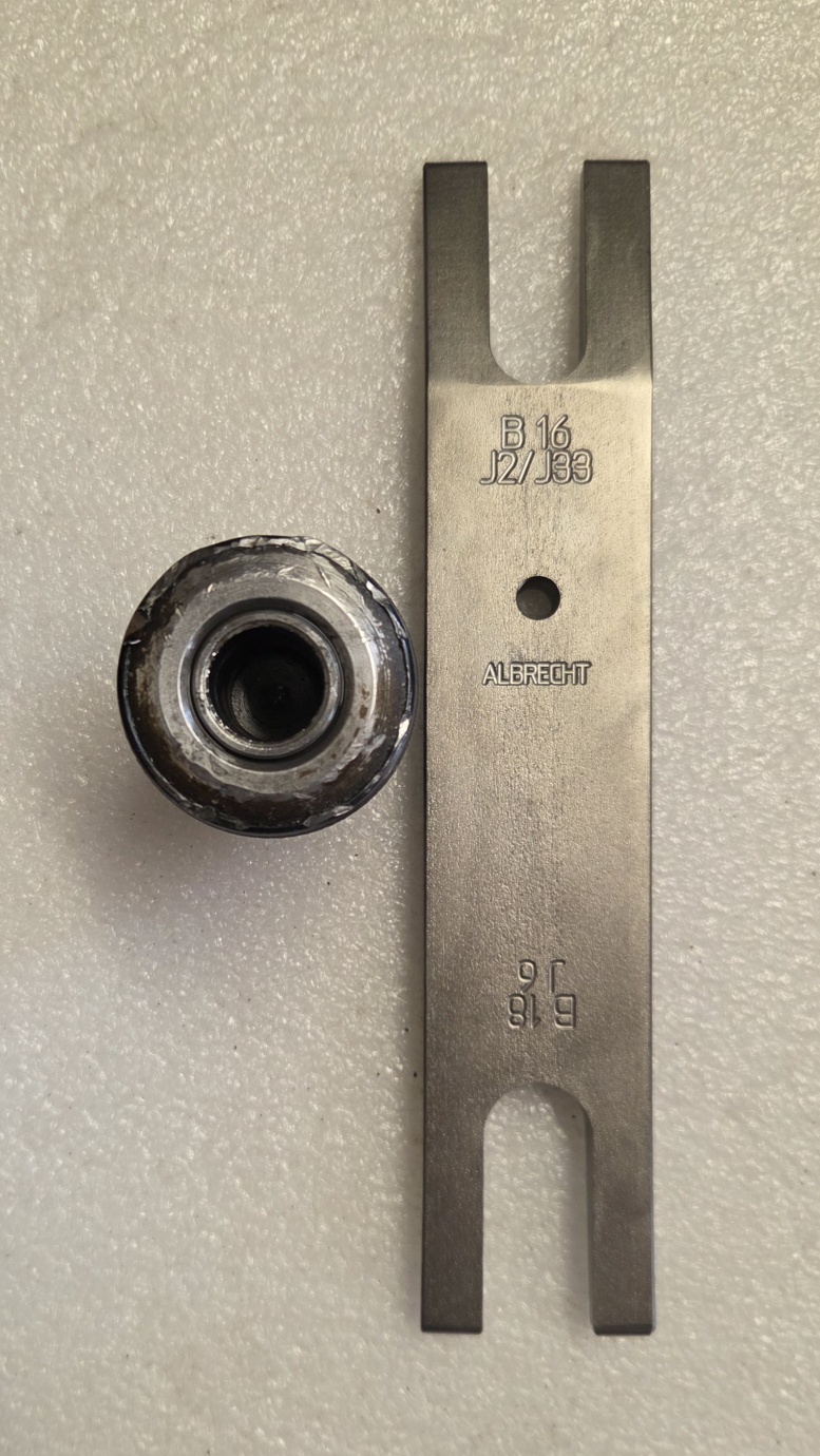 2. Cez otvor môžeš vložiť vhodný kolík, jemne ho upnúť čeľusťami len tak, aby bol vystredený a pomocou sťahováku cez tlak na kolík následne sklučovadlo stiahnuť dole ak má kužeľ.