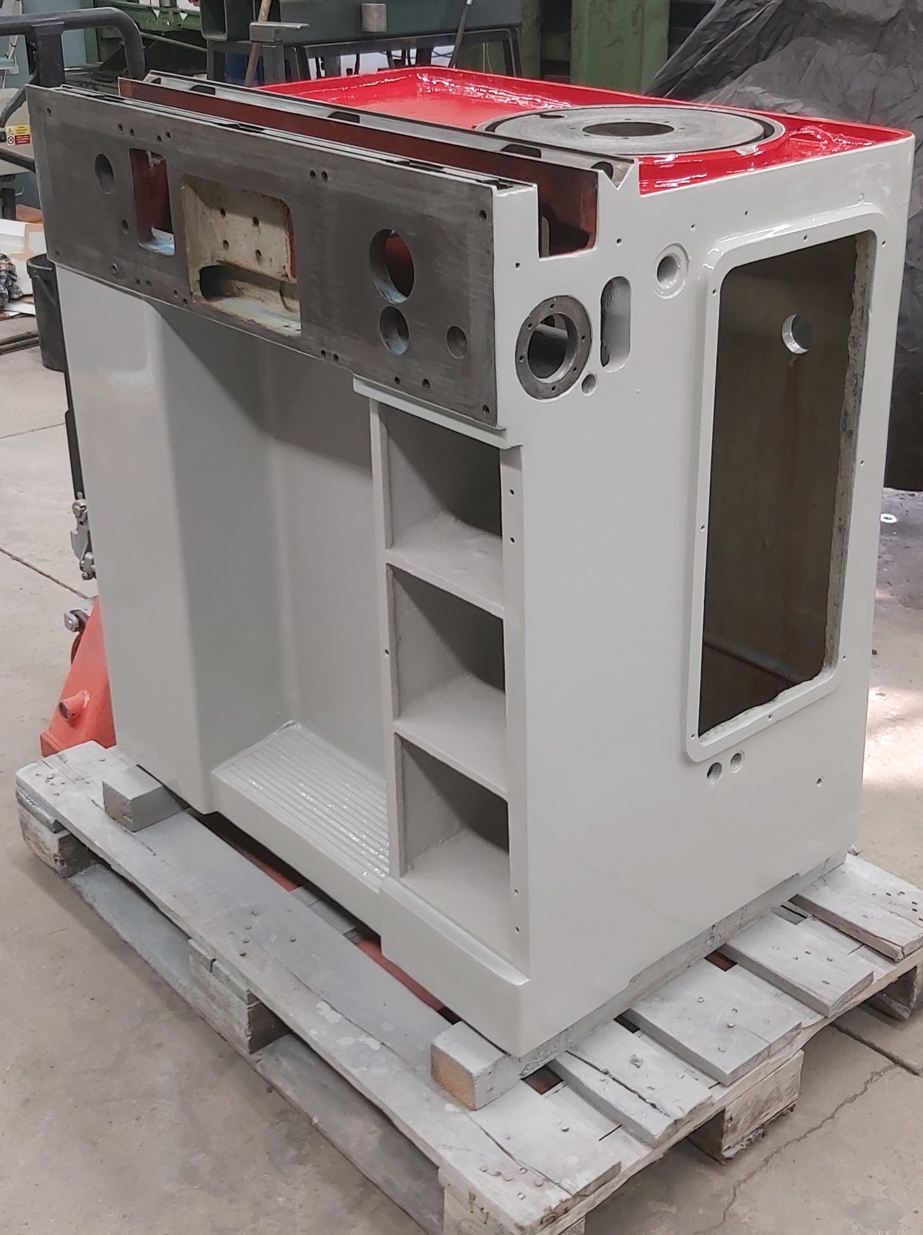 piest je na závit: základ je už oštrabaný, odmastený (väčšinou) a obrúsený od nesúdržných častí. To biele je základná farba tam, kde to bolo až na kov. No a pracovný vreteník - opatrne som ho rozobral, nech nevytečie olej a nezababrem pol dielne. Nevytiekol, nemal aký. Sucho ako na sahare.