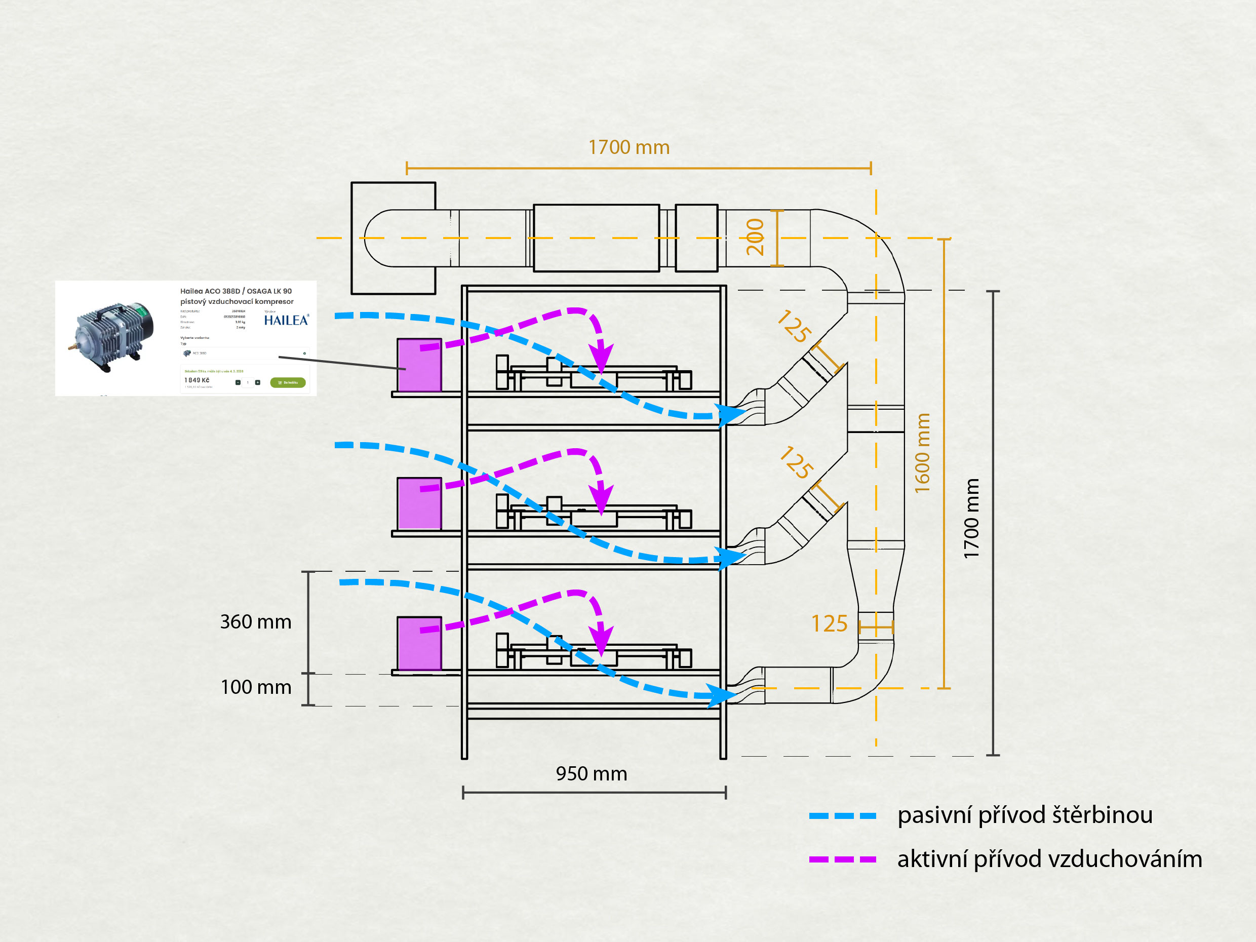 2) Jaký používáte ventilátor na odtah zplodin? Kvůli filtrům a trochu komplikovanějšímu vedení budu potřebovat radiální typ. Ideálně by se mi hodil tenhle fasádní ventilátor, který bych jednoduše namontoval zvenku a ušetřil místo. Jen doufám, že si zvládne poradit s filtry.