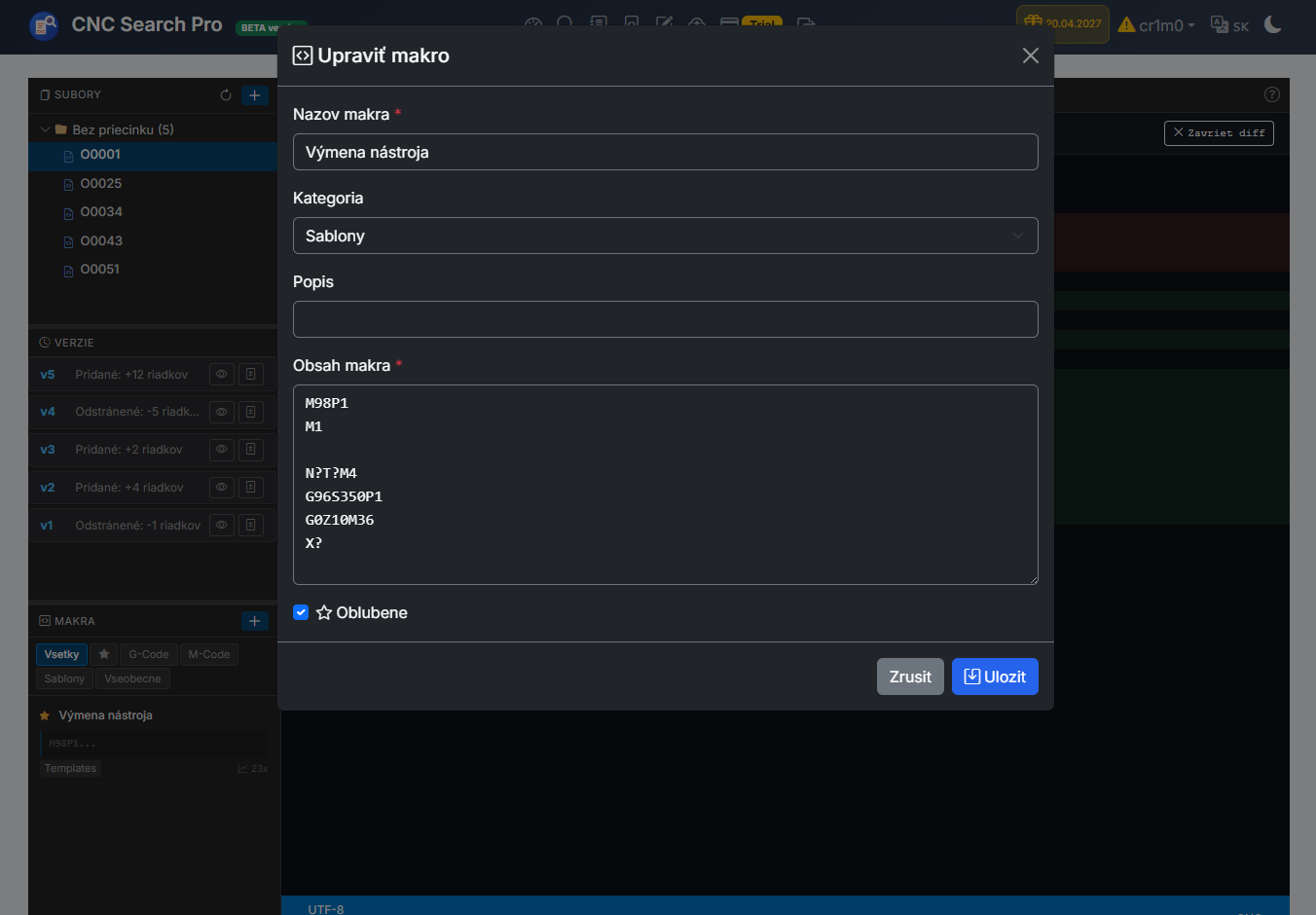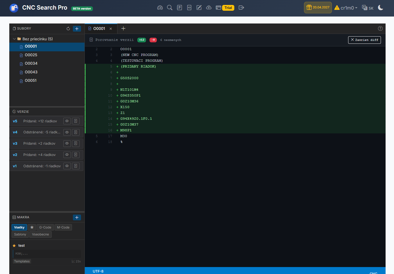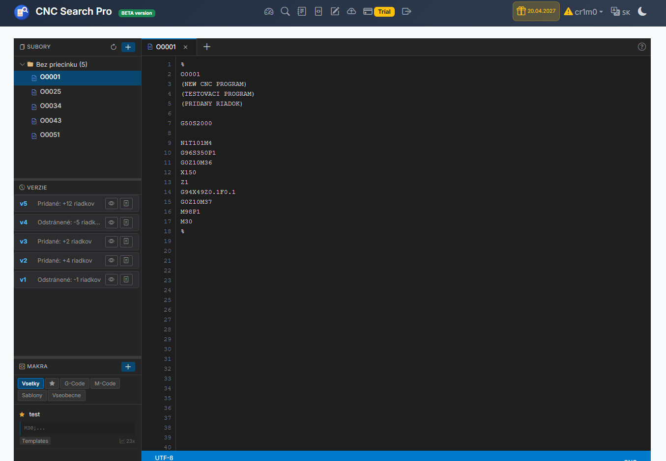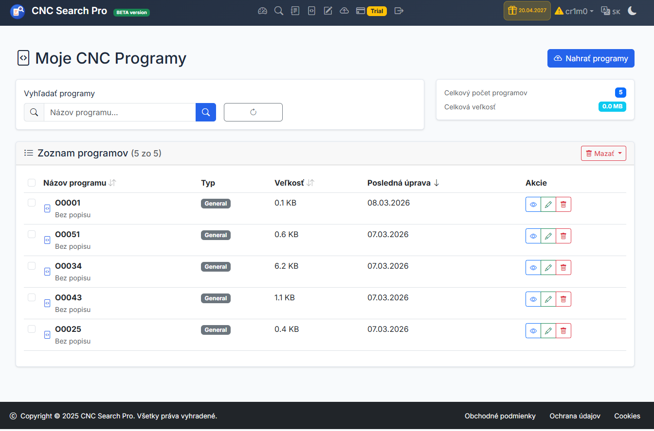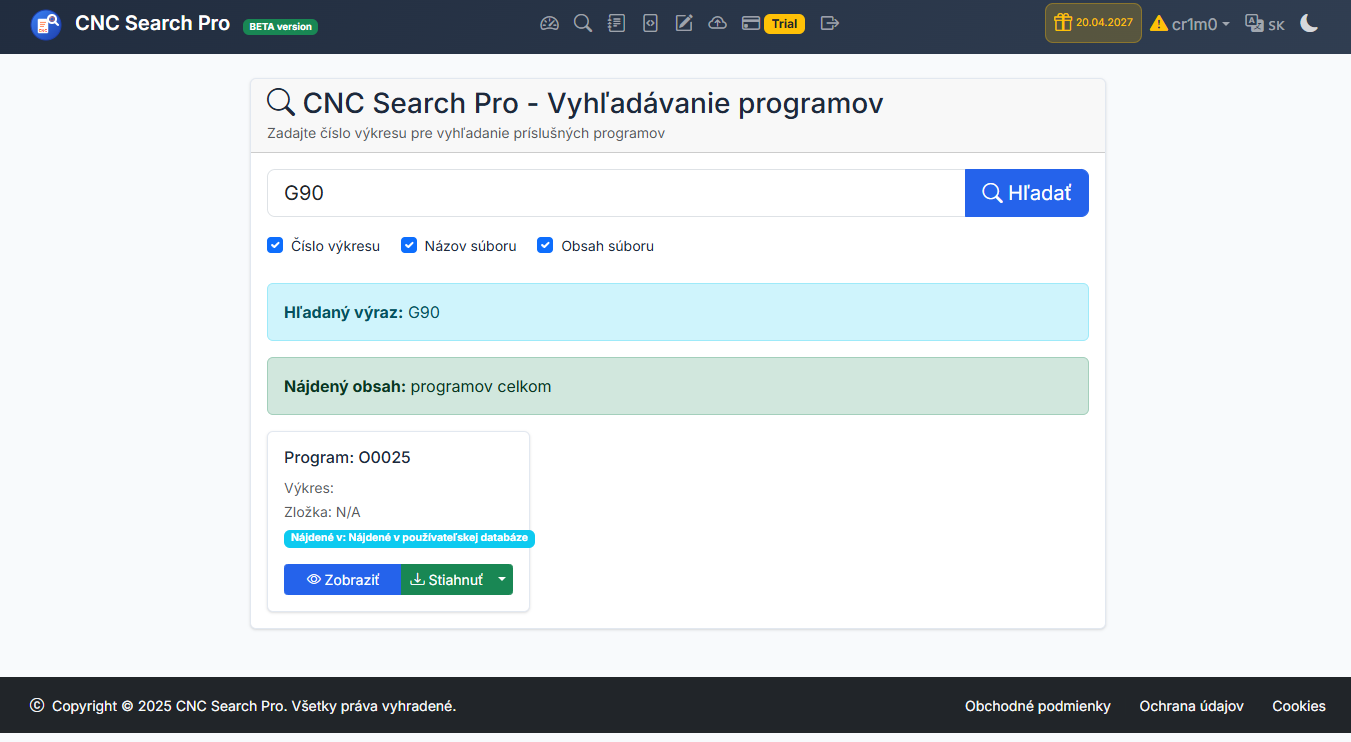 rýchle vyhľadávanie CNC programov podľa názvu alebo obsahu