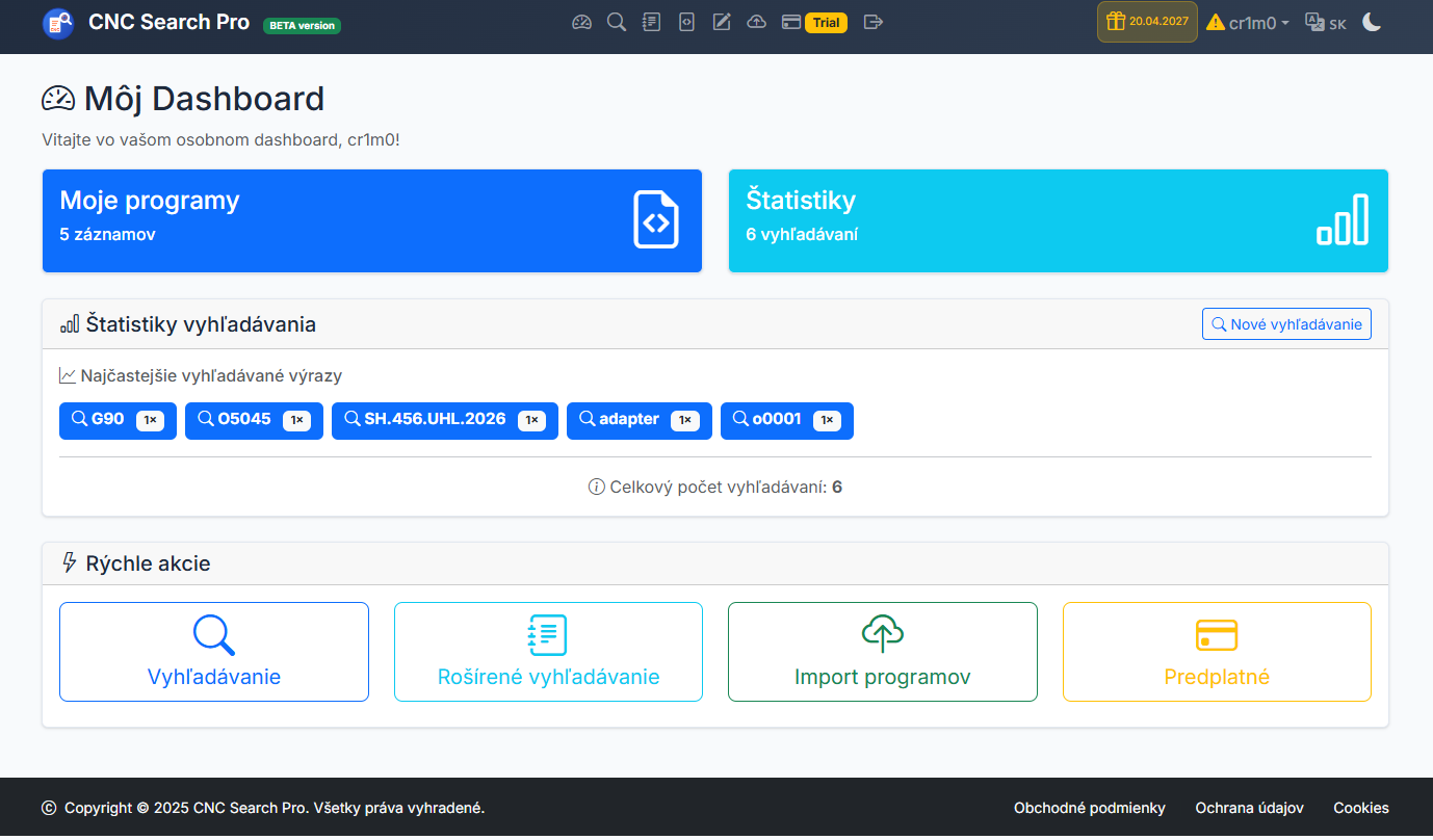 poslednú dobu pracujem na projekte CNCSearch.pro a rád by som získal spätnú väzbu od ľudí z CNC komunity.