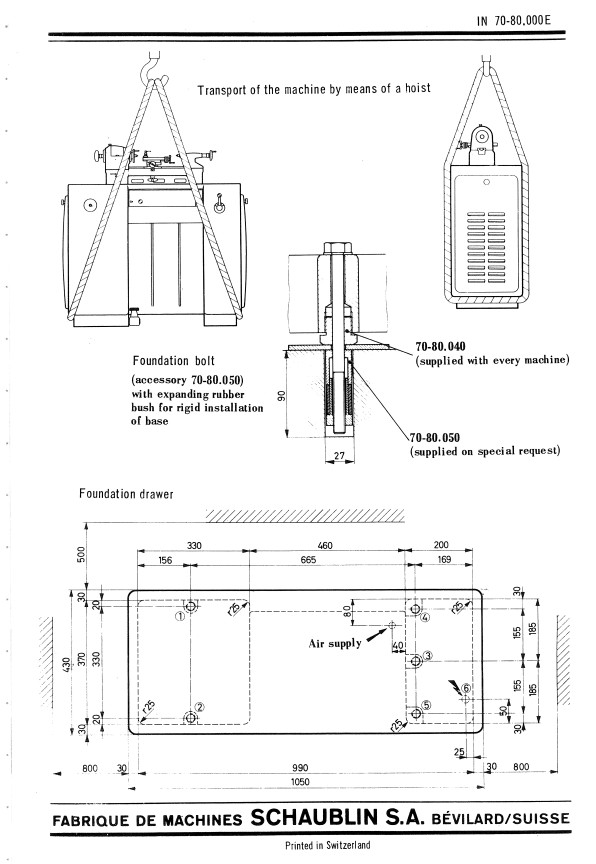 Stolní (bez fundamentu) 70 a 102 mají použitý obyčejný svorníky - tuším M8 - jedna strana natočená do mašiny, mezi mašinou a stolem kus plechu, dole podložka a matice, má se to dotáhnou a vypodložit s aplikací mozku.