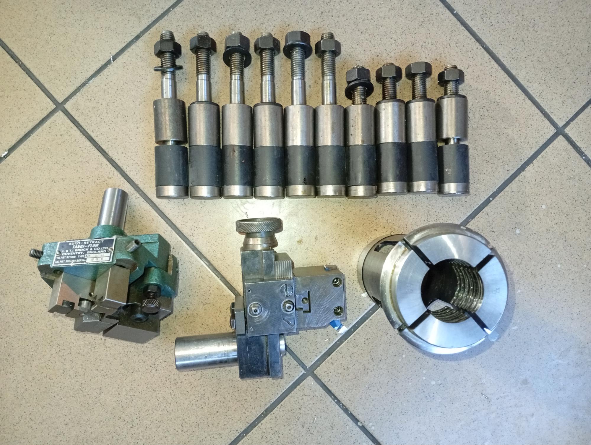 Liší se délkou podle mašiny, šroub je točený, závit naválcovaný, guma je normální NBR, podložka je točená, zušlechtěná matice obyč, komunál. Pro představu o velikosti - to TangiFlow má stopku 20mm, ten Sch držák pro 122 má stopku 25, kleština je F64.