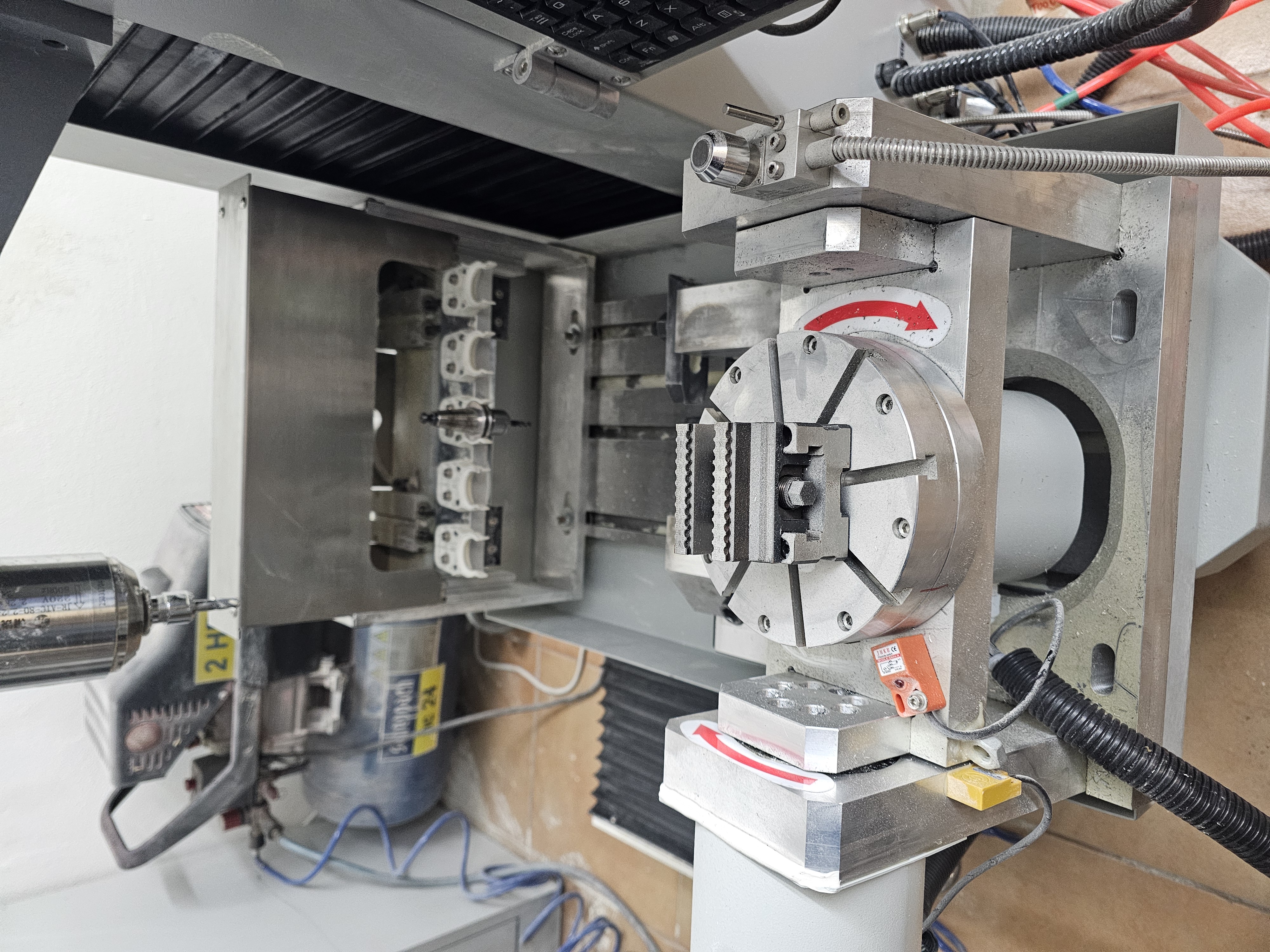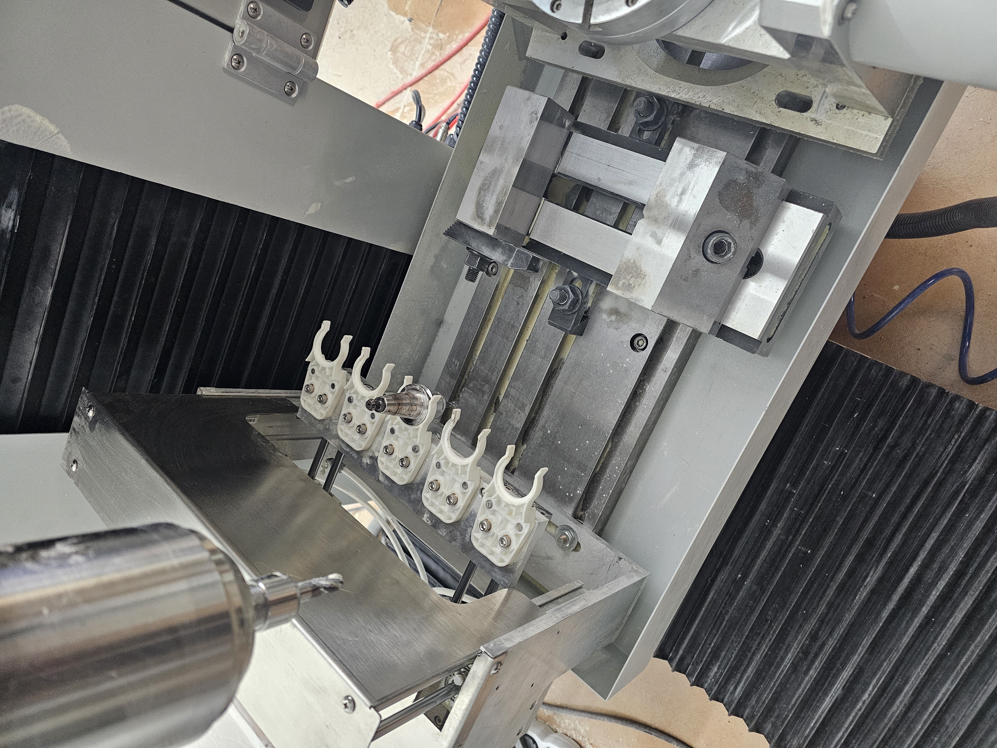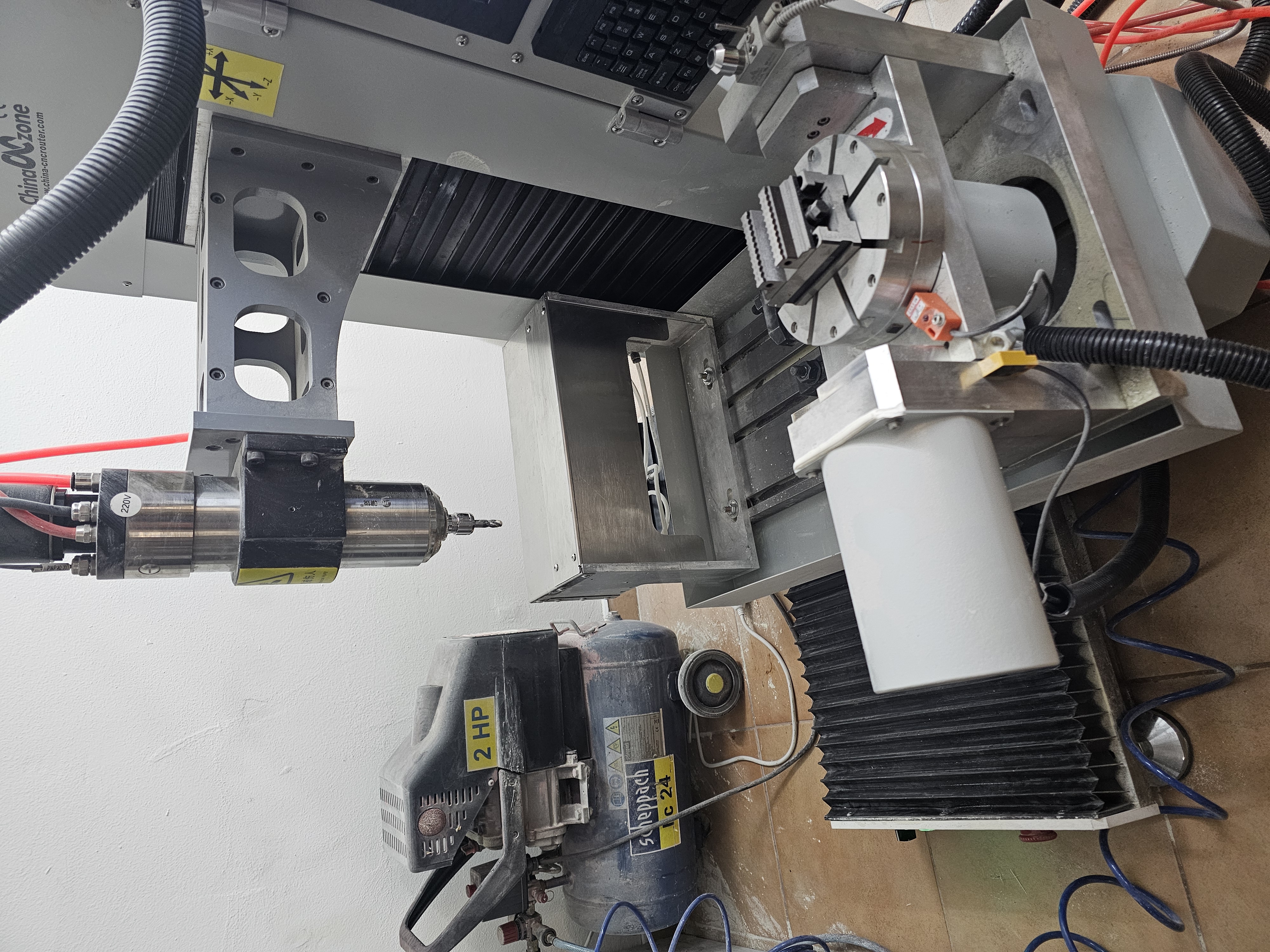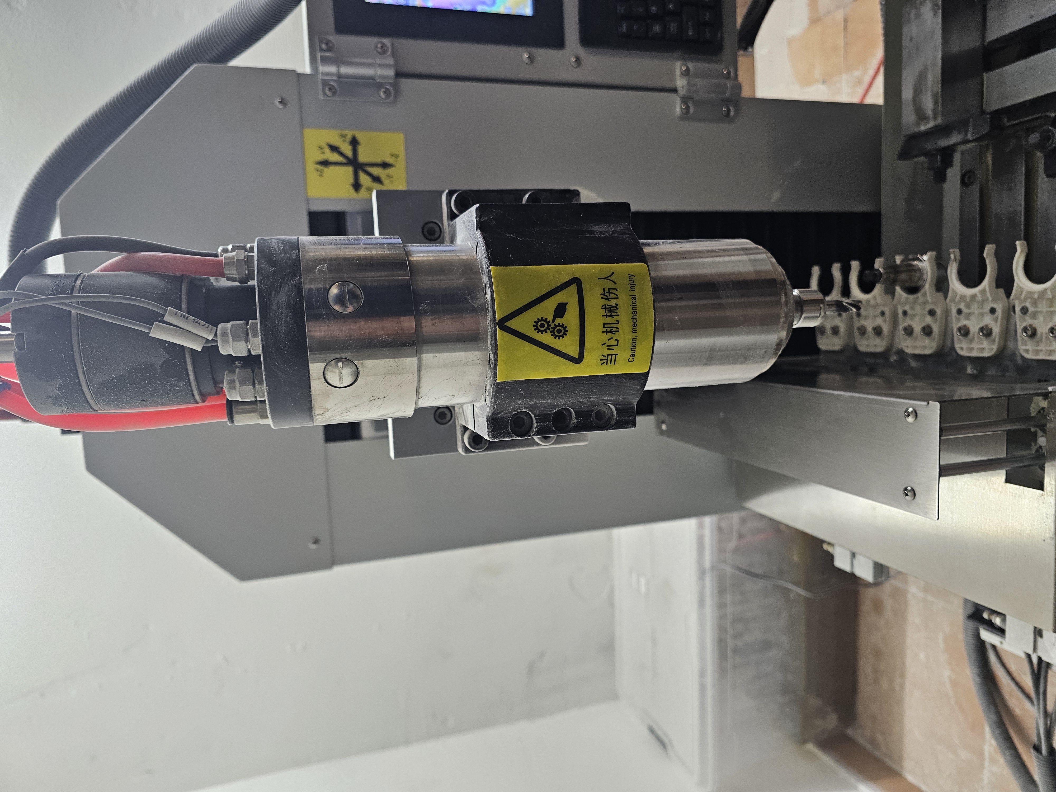 ​Vreteno: 2.2 kW, vodou chladené s automatickou výmenou nástrojov (ATC), upínanie ISO20.