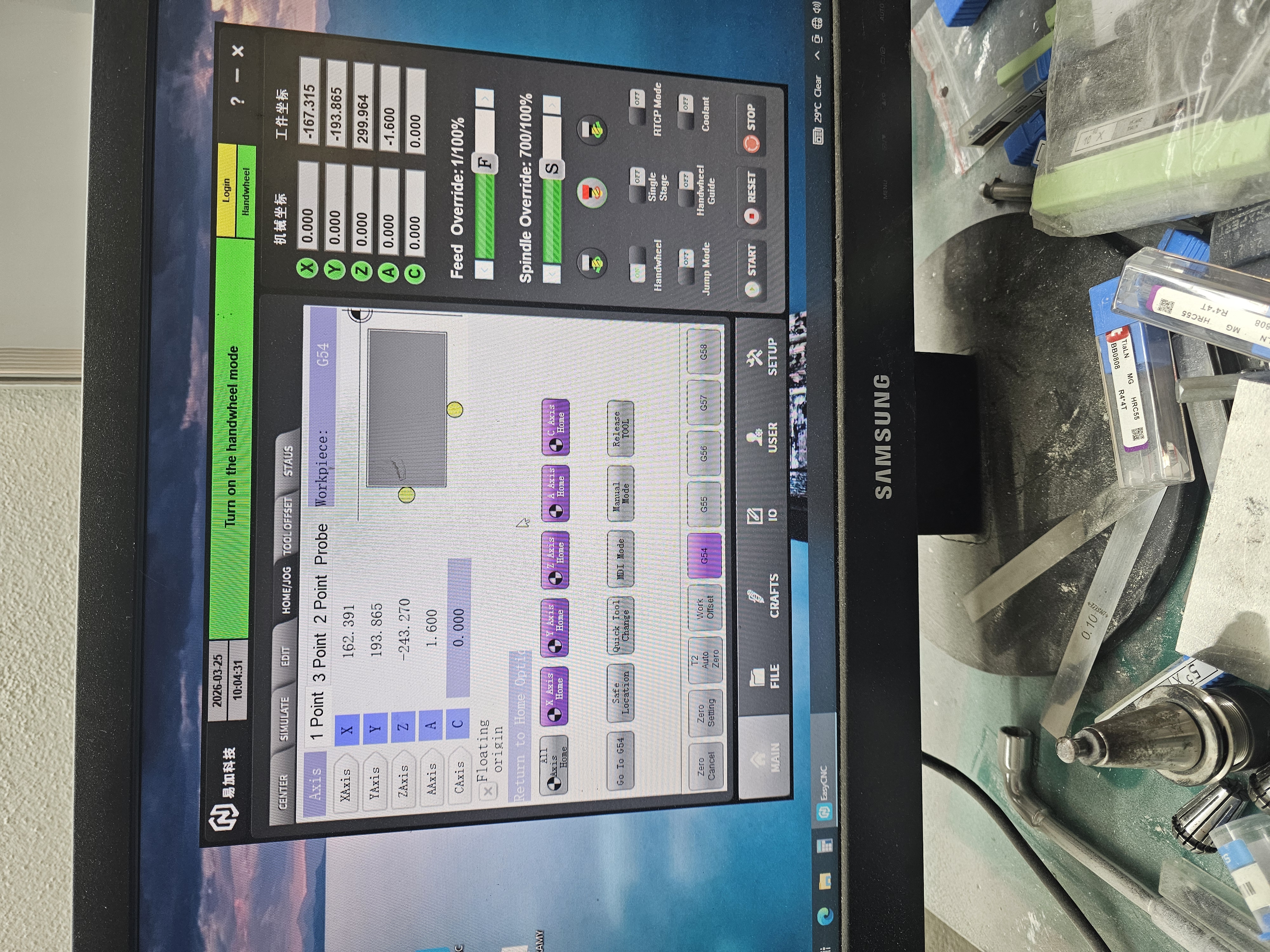 K stroju je možné po dohode pridať 3D taster Haimer Zero Master, magnetický stojan s odchýlkomerom a brúsené zveráky.