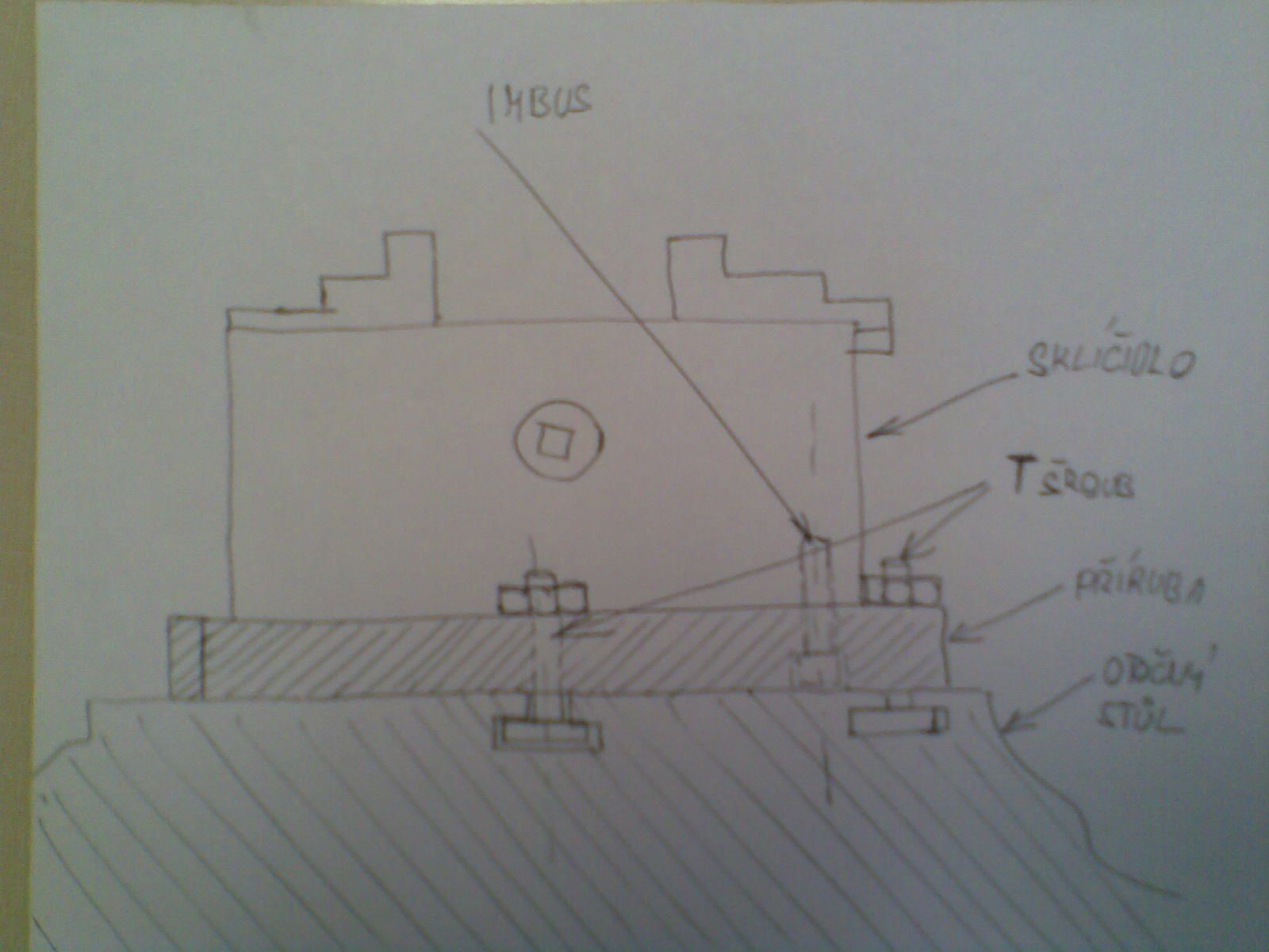 magi píše:Co vyrobit přírubu většího průměru než je univerzálka? K ní univerzálku klasicky imbusy zezadu a celé toto jinými otvory, které by byly mimo obrys univerzálky na stůl pomocí T šroubů. Mělo by to výhodu, že by příruba mohla mít zespod otvor s trnem, který by pasoval přesně do středové díry na otočáku. Tím pádem, pokud by jsi potřeboval mít univerzálku v ose otočáku, nemusel by si ji pokaždé rovnat podle hodinek.