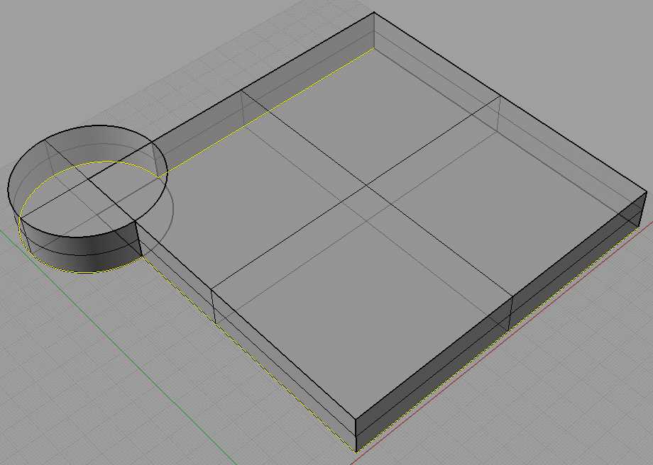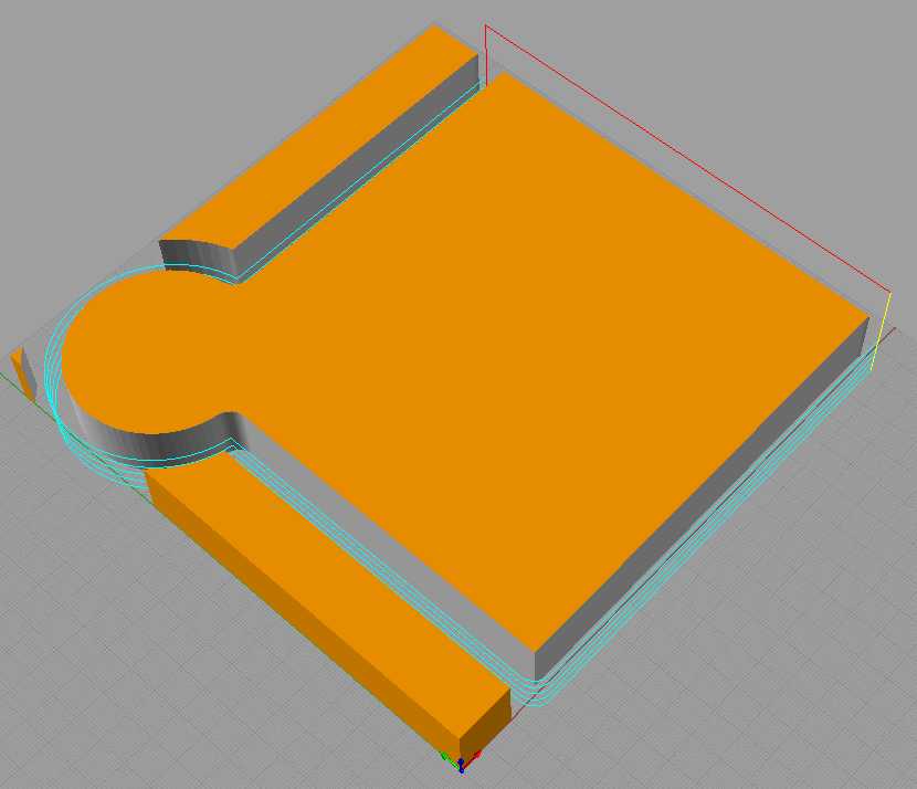 obr.2: Chcem aby mi obrobila mašina 3 strany, skúsim 2.5D obrábanie s niekoľkými krokmi v Z-osi. Vytvorím si krivku na spodnej hrane výrobku - je to voľba v menu: Curve - Curve from Objects - Duplicate Edge. Vyklikám si tie hrany, podľa ktorých chcem aby šla fréza. Vytvorí mi krivky, ktoré spojím dokopy(join).