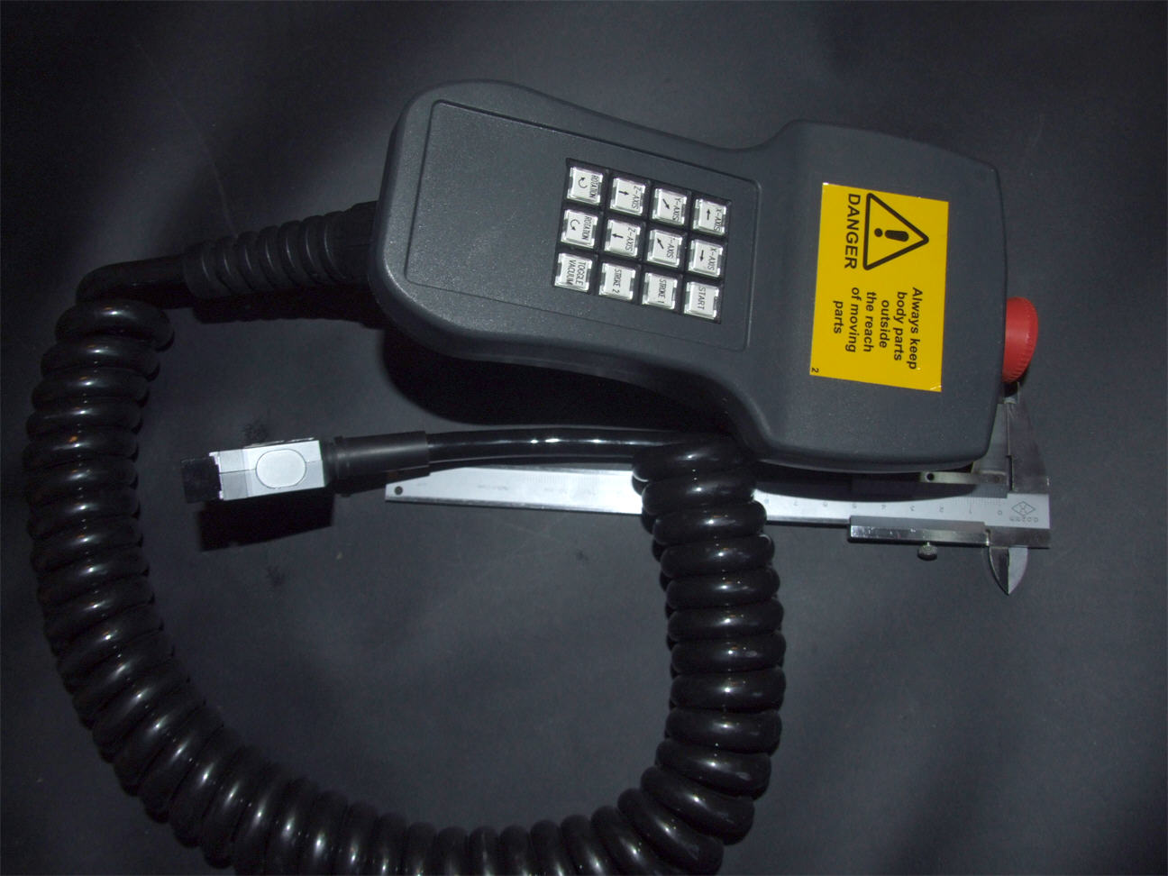 ma to osazenou stopku, dve bocni tl. a klavesnici, na spodku je vyklapeci oko(hak) na uchyceni + to ma suprovej masivni kabel - ten je na tom to nejlepsi