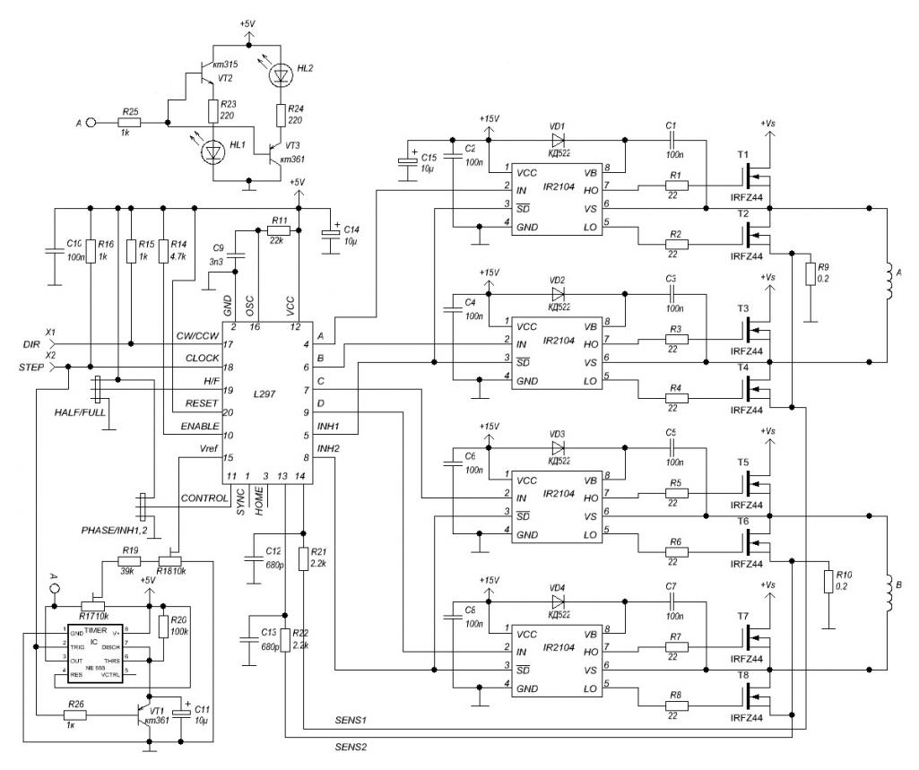 Dobrý den, chtěl bych se zeptat, pokud ve spojeni L297 s L298 dochází k omezování proudu pomocí porovnávání Uref s SenseA a následným vypnutím vykonového stupně inhA (inh chopping), pokud nebudu chtít použít výkonový stupeň L298, čím mohu nahradit toto měření proudu? Měl bych zapojení s tranzistory (možnost mnohem většího výstupního proudu). A zda je množné, či vhondé použít D regulátor na vstupu Uref, pro krtátkodobé přetížení soustavy ->hladší rozběh..