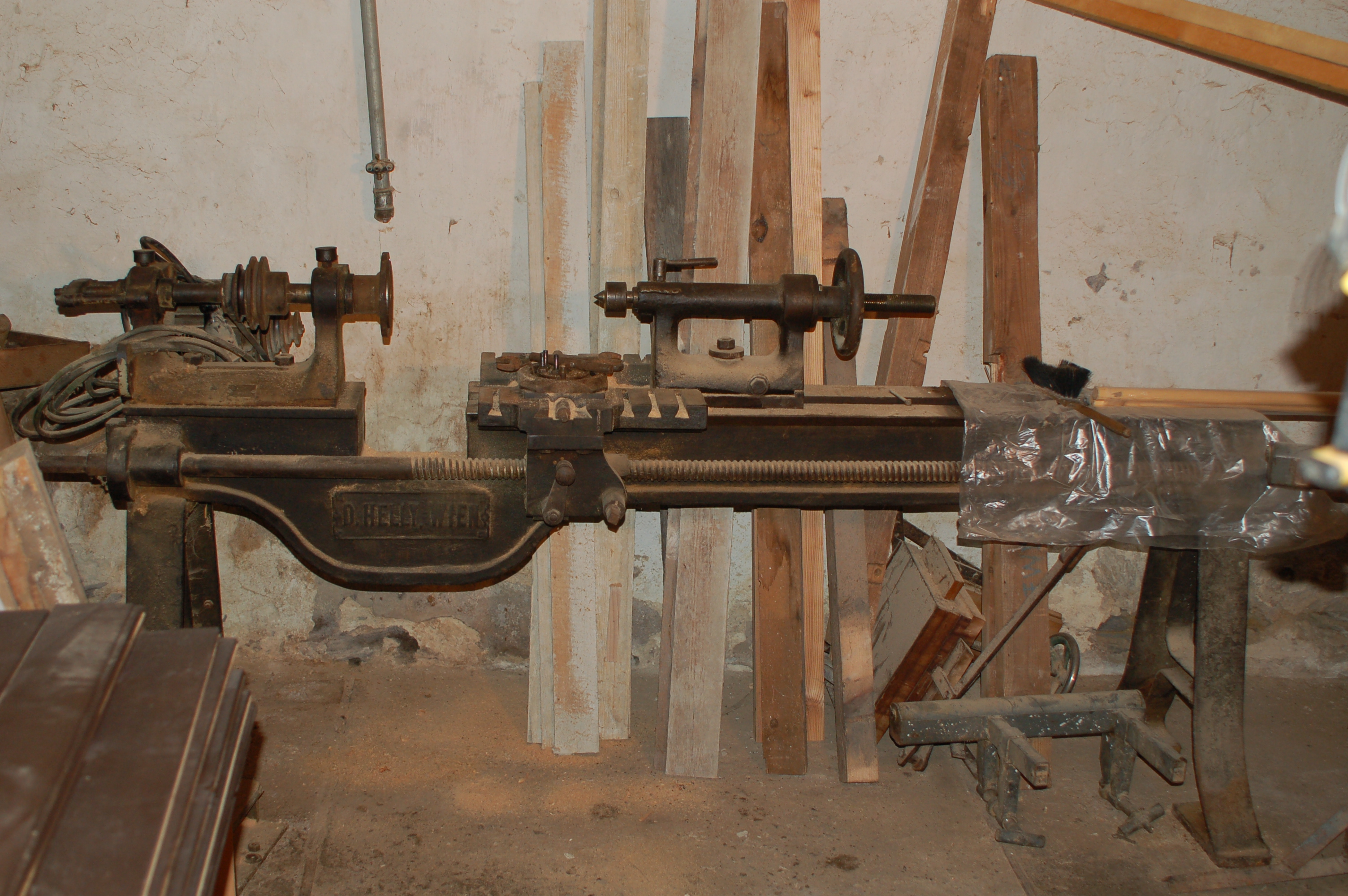 Tak tohle uz leta zahalí u mne v dilně. O historii stroje toho moc nevim, někdy v 50. letech v vyřazen z jedné firmy a od té doby byl pouze párkrat používán na soustružení dřeva z ruky. Rád bych ho ale využíval i na kov na takovéto to domácí soustružení. Co se bohužel nedochovalo je nožový suport a také veškeré převody jsou v tahu