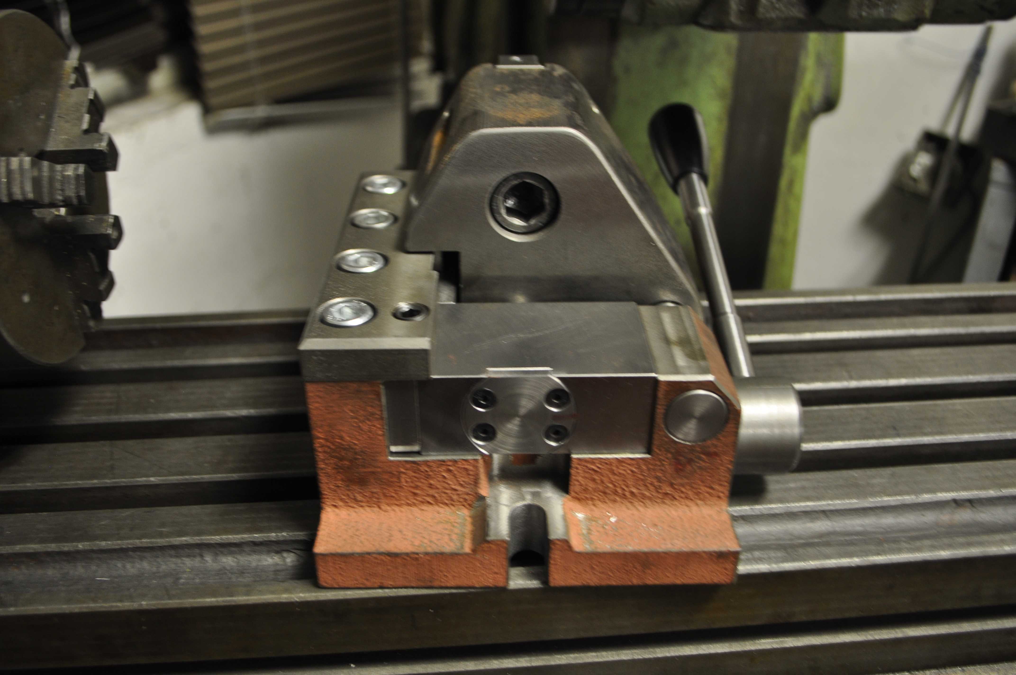 Tak jsem si konečně dodělal odklápěcí koník k děličce. Kdysi jsem jsem s ním pracoval a hned jsem si ho oblíbil. Oproti klasickému koníku má tu výhodu, že se dá odklopit a má velký prostor okolo středu hrotu pro měření nebo výměnu kusu. Základní tělo a posuvný segment je litinový odlitek, posuvné díly kalené a ostatní díly vyrobené z 15142. Do barvy půjde až na jaře, protože venku je už na to zima.