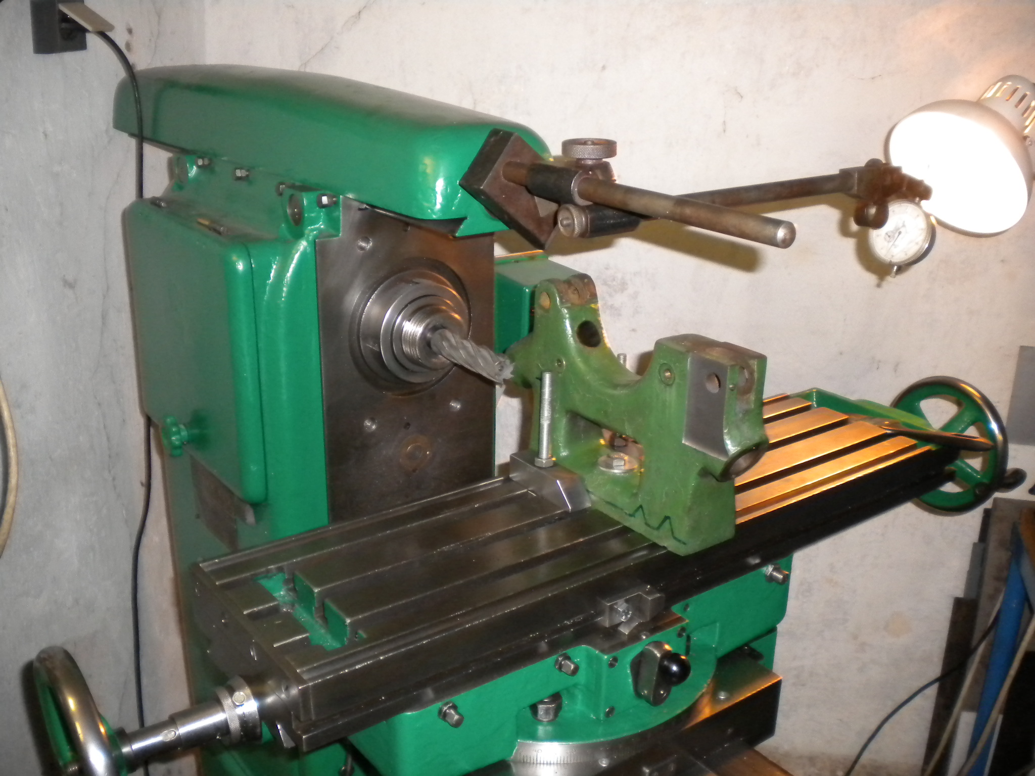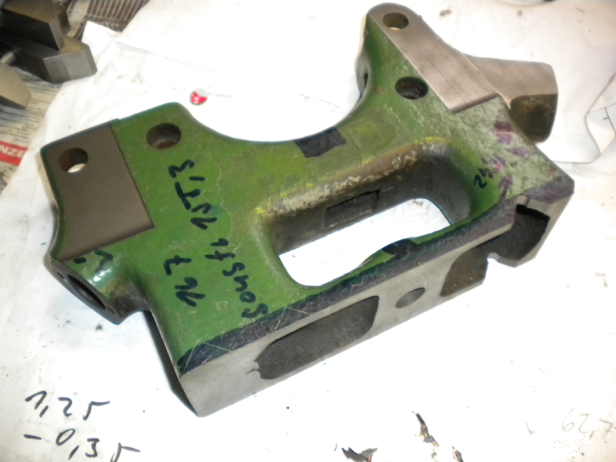 Důkladně jsem proměřil soustruh a lunetu a došel k závěru, že přidání materiálu nebude potřeba,snížená dosedací plocha ještě půjde vytvořit na stávajícím odlitku.Pro solidní upnutí frézuji na lunetě upínací a vyrovnávací plochy. Zkráceně nastíním postup prací: potřebuji vrtat díry pod úhlem ... nápad - vyrobím si na vrtačku naklápěcí stůl ... na výrobu stolu dle mojí konstrukce potřebuji lunetu do soustruhu ... seženu lunetu ... luneta potřebuje upravit ... na úpravu mám málo upínek ... vyrábím upínky atd atd , takže se třeba časem k těm šikmým dírám opět propracuju