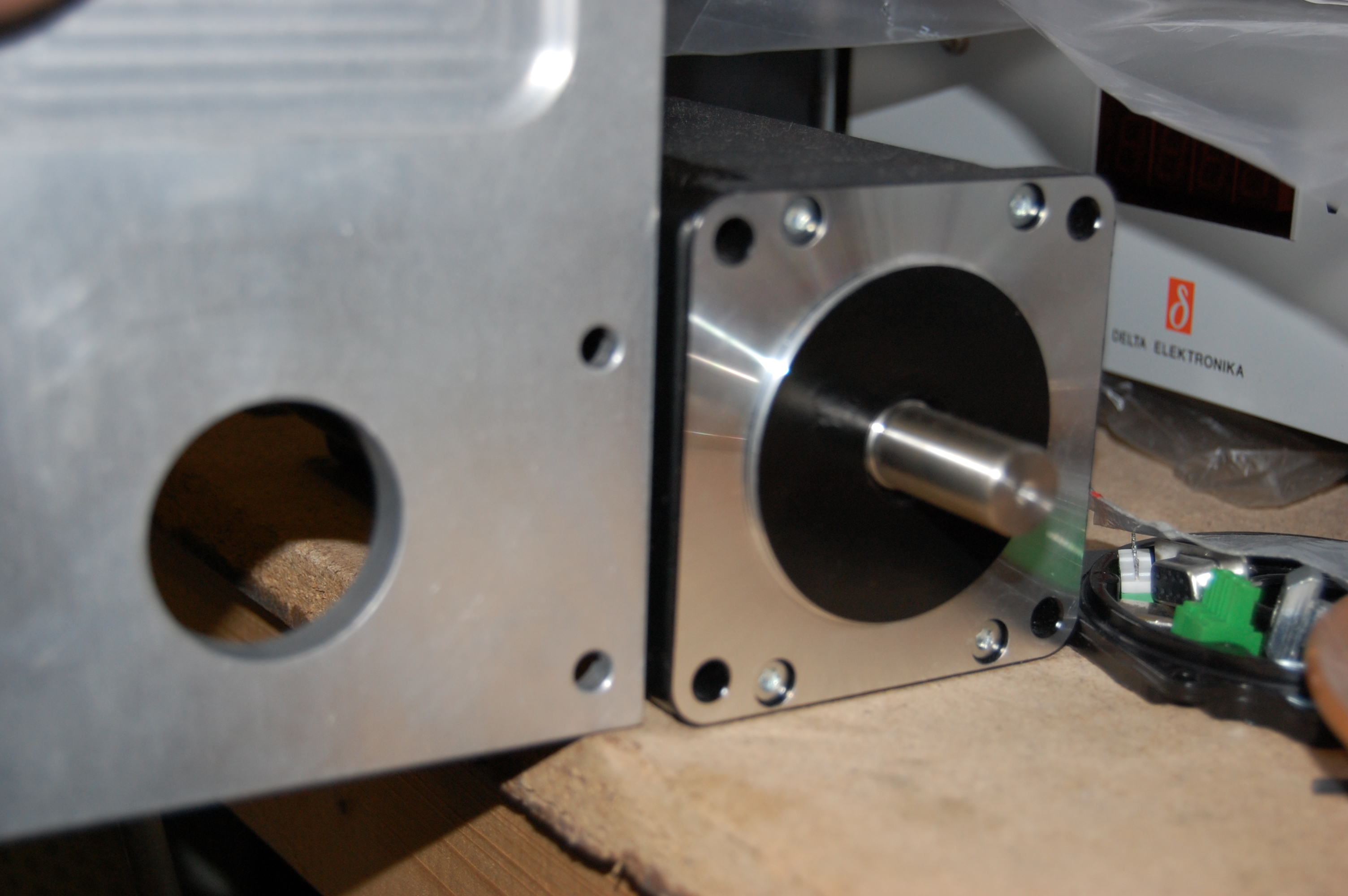 Motor (3f 6Nm) má středící kruh průměr 60mm, rozteč upevňovacích děr 70x70mm. Viz foto. Nalevo je původní plech na kterém bylo servo.
